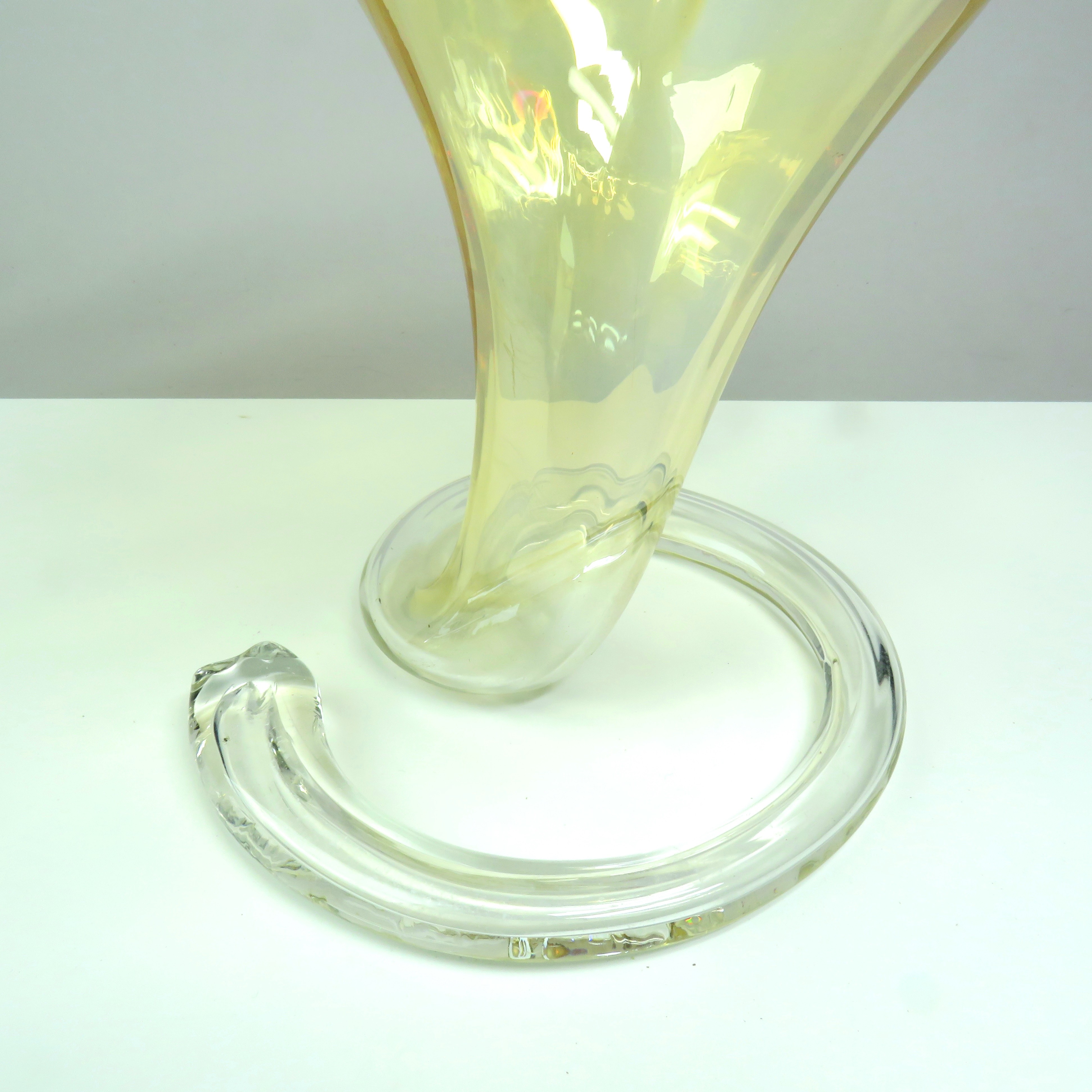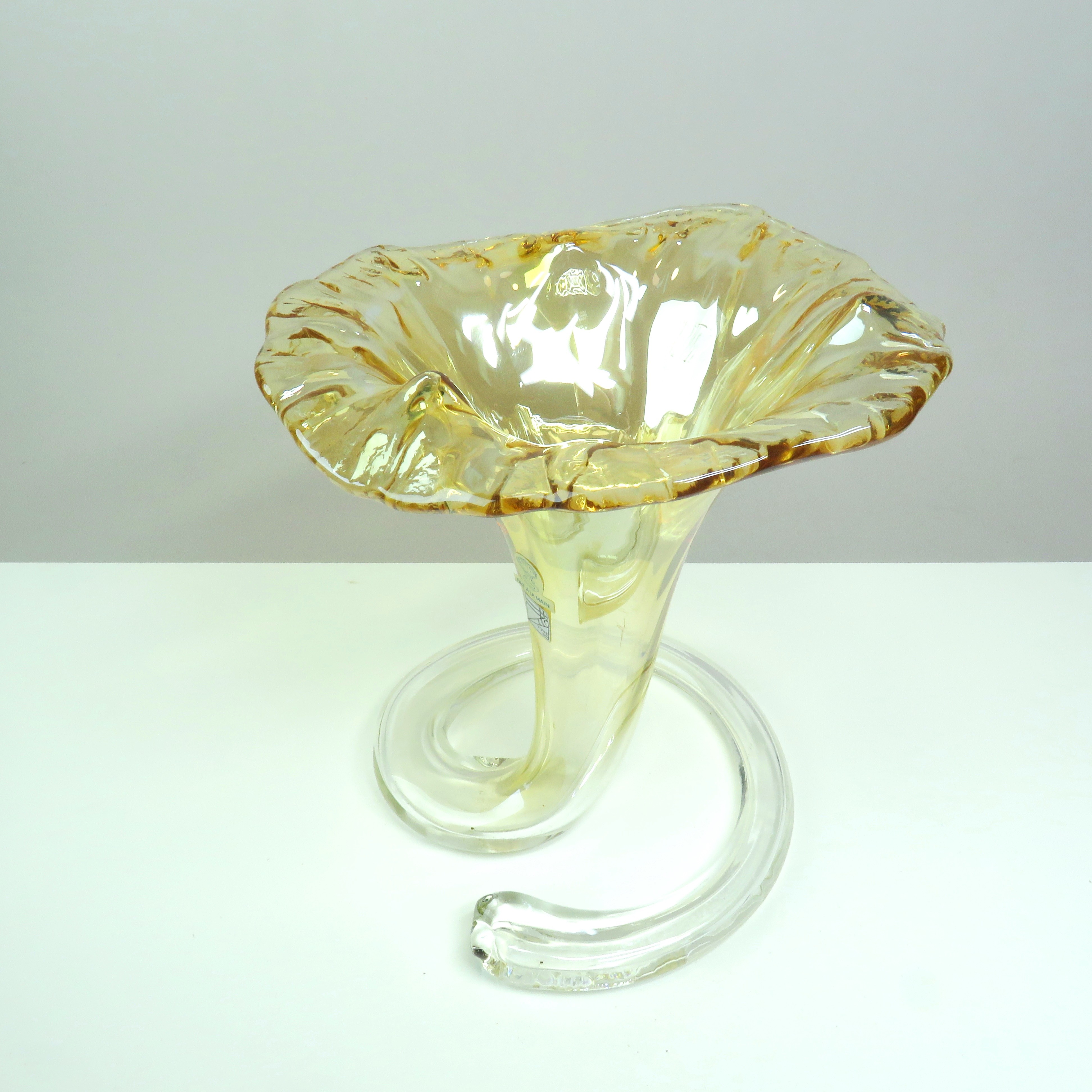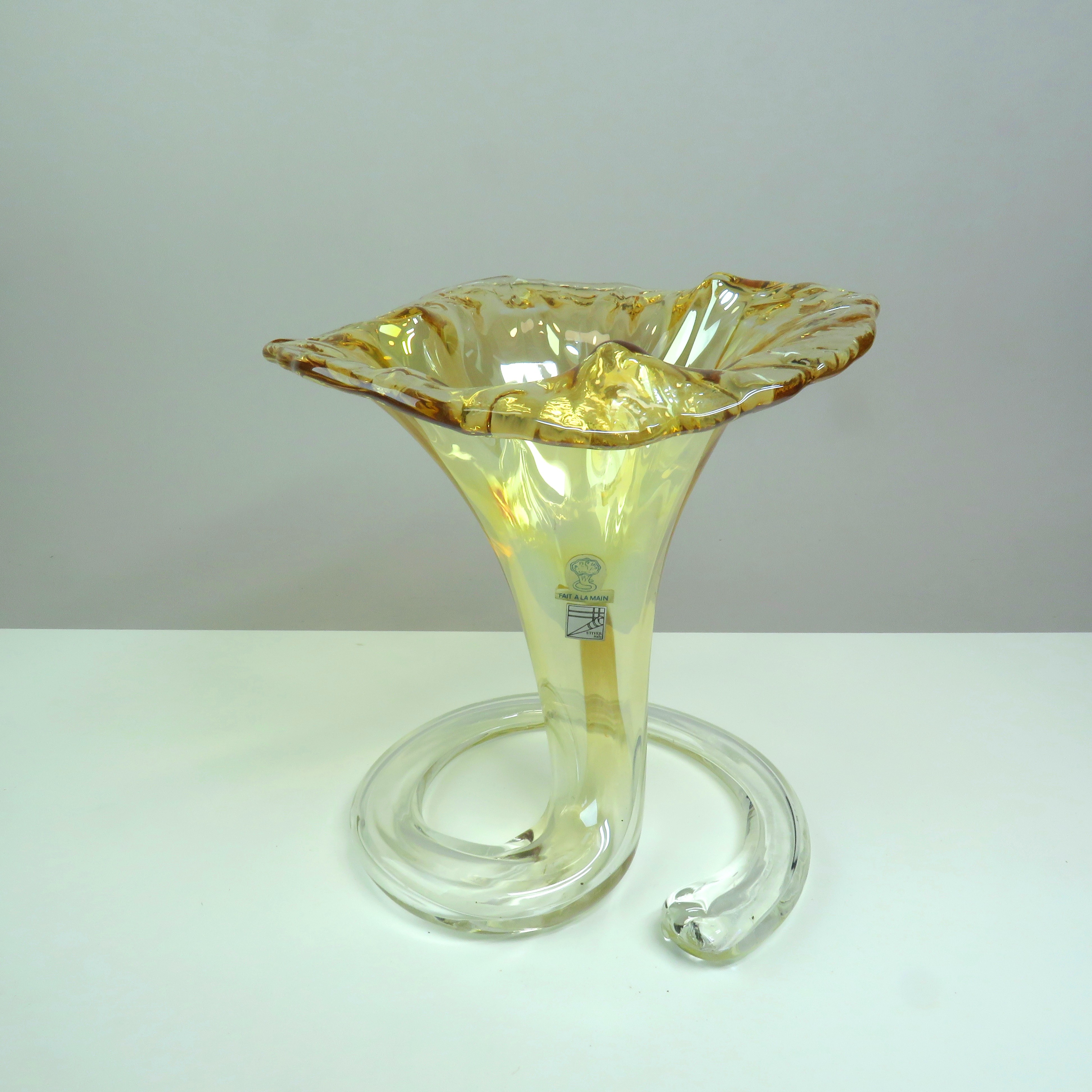 Vase vintage en verre de carnaval / souci. Ce vase est en verre blanc et orange irisé. Fait a la main