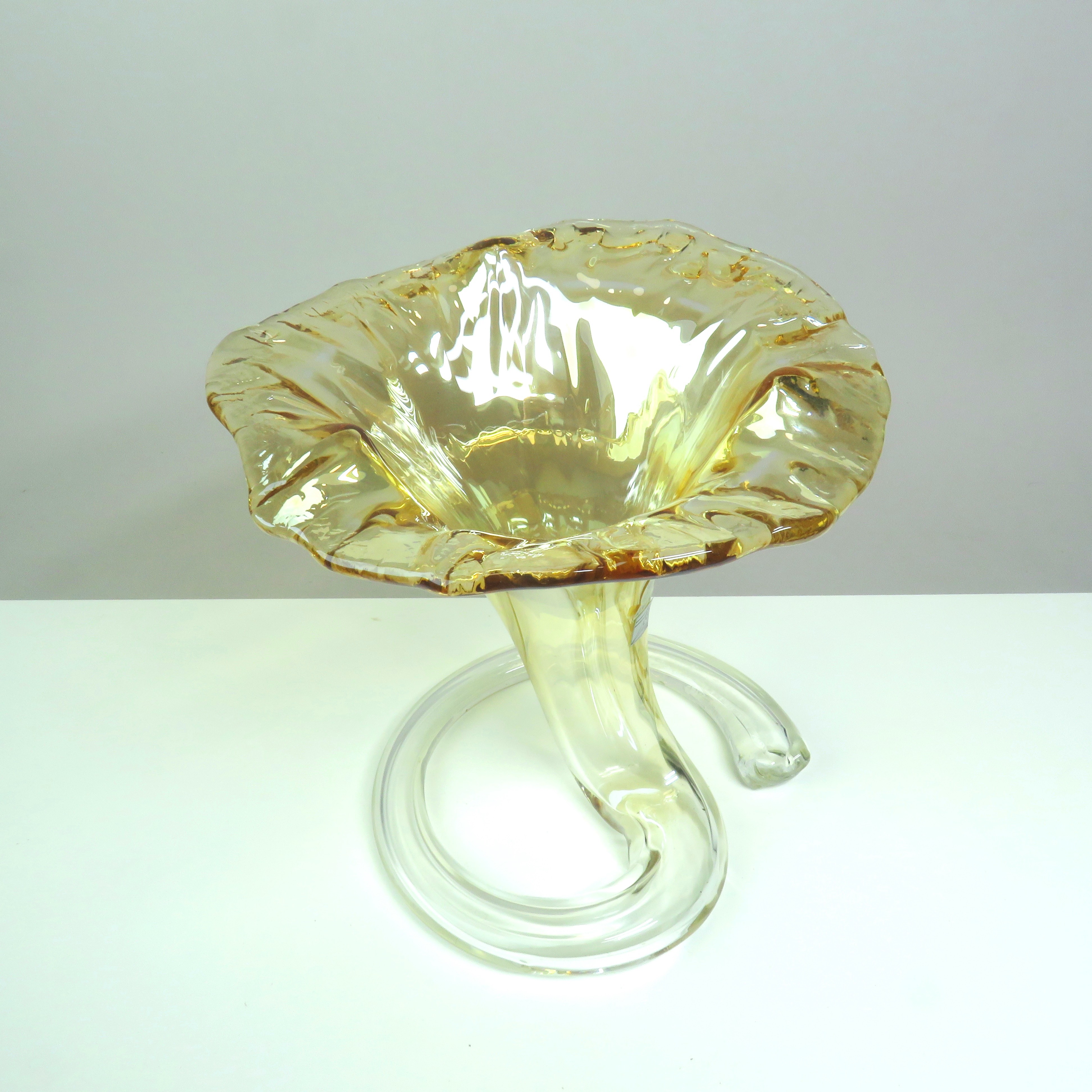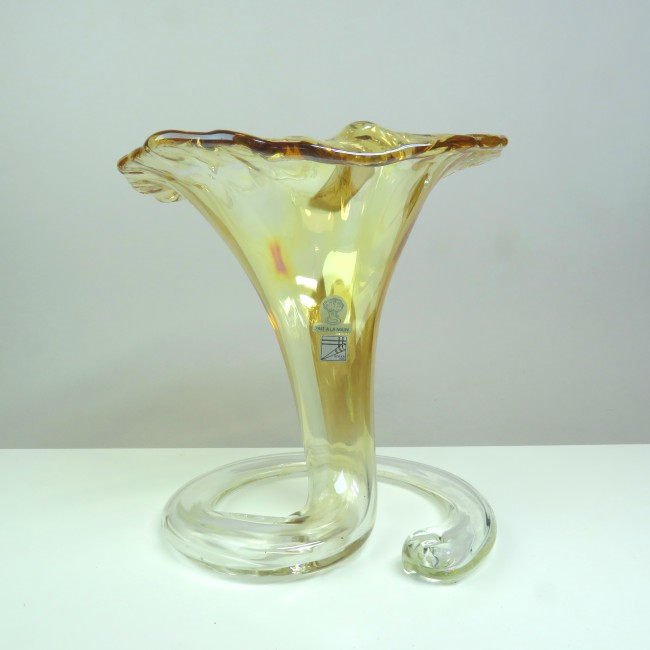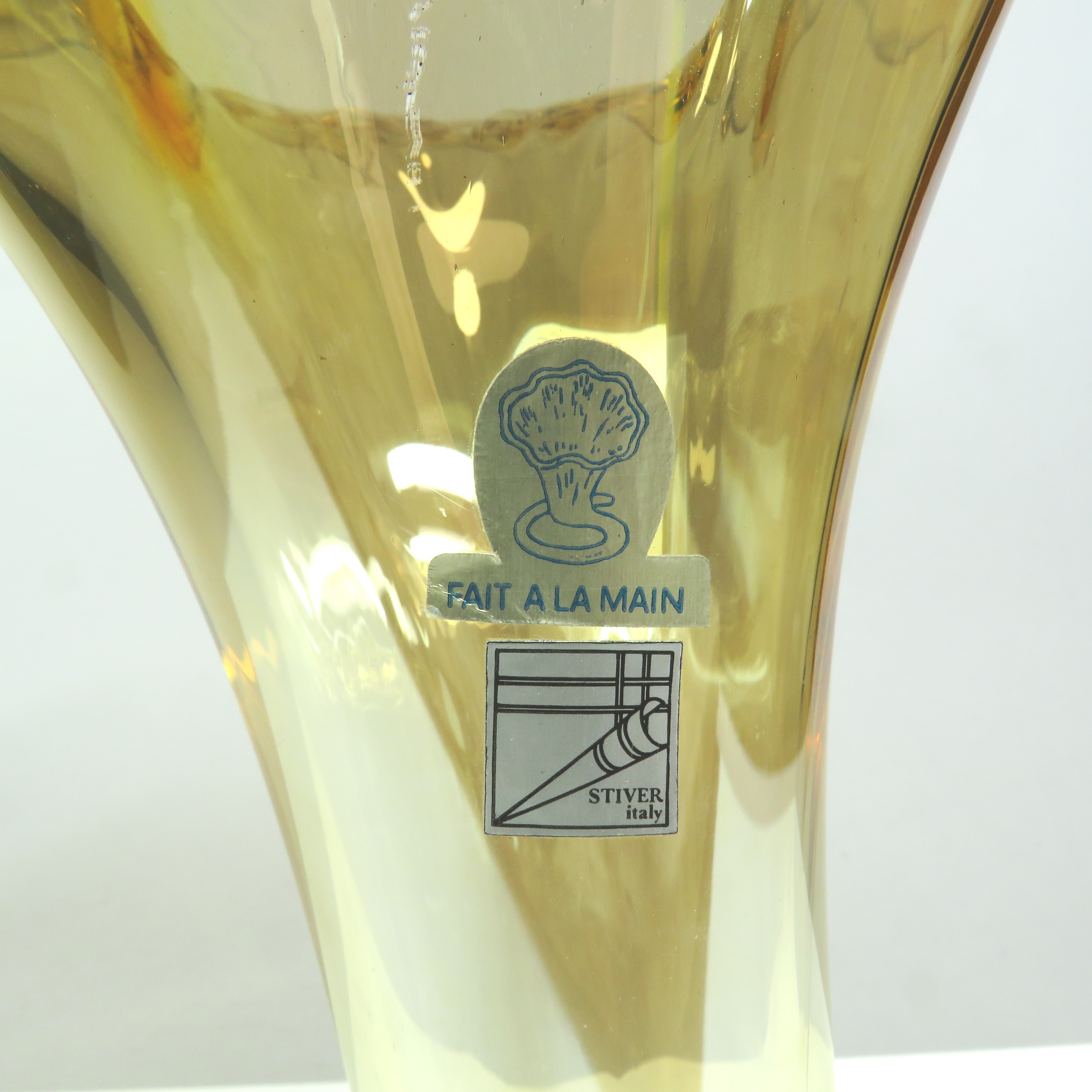 Vase vintage en verre de carnaval / souci. Ce vase est en verre blanc et orange irisé. Fait a la main