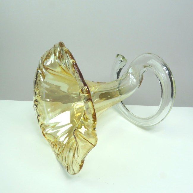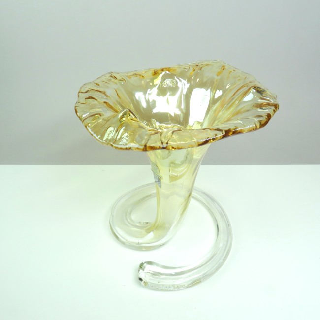 Vintage carnival / marigold glass vase. This vase is made of white and iridescent orange glass and handmade.
