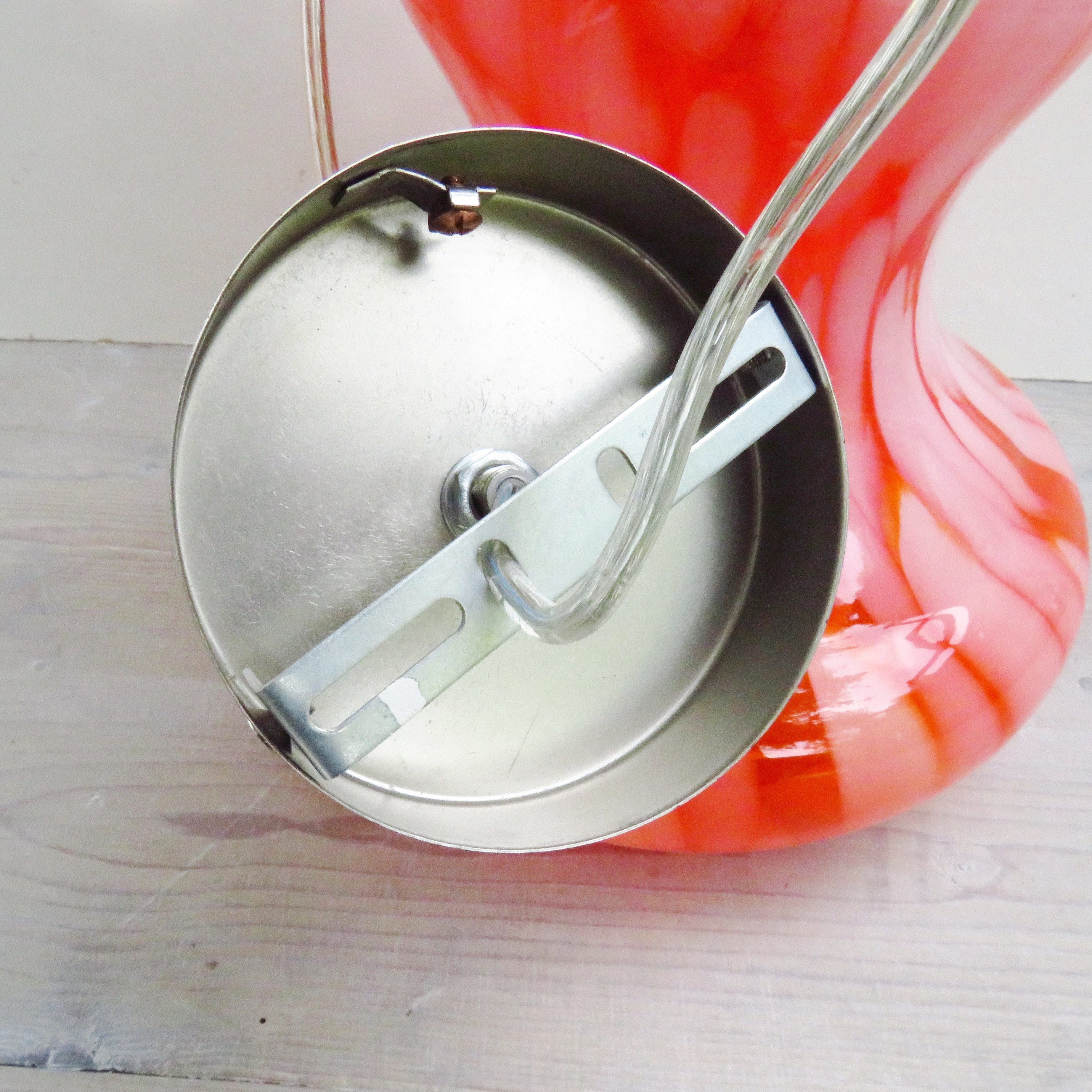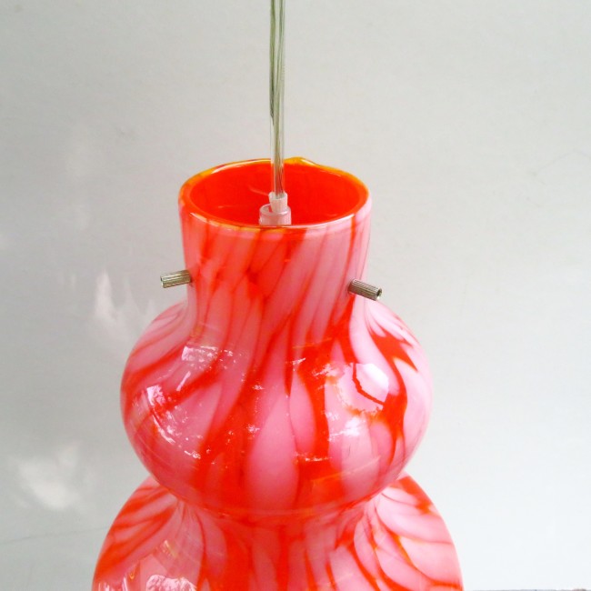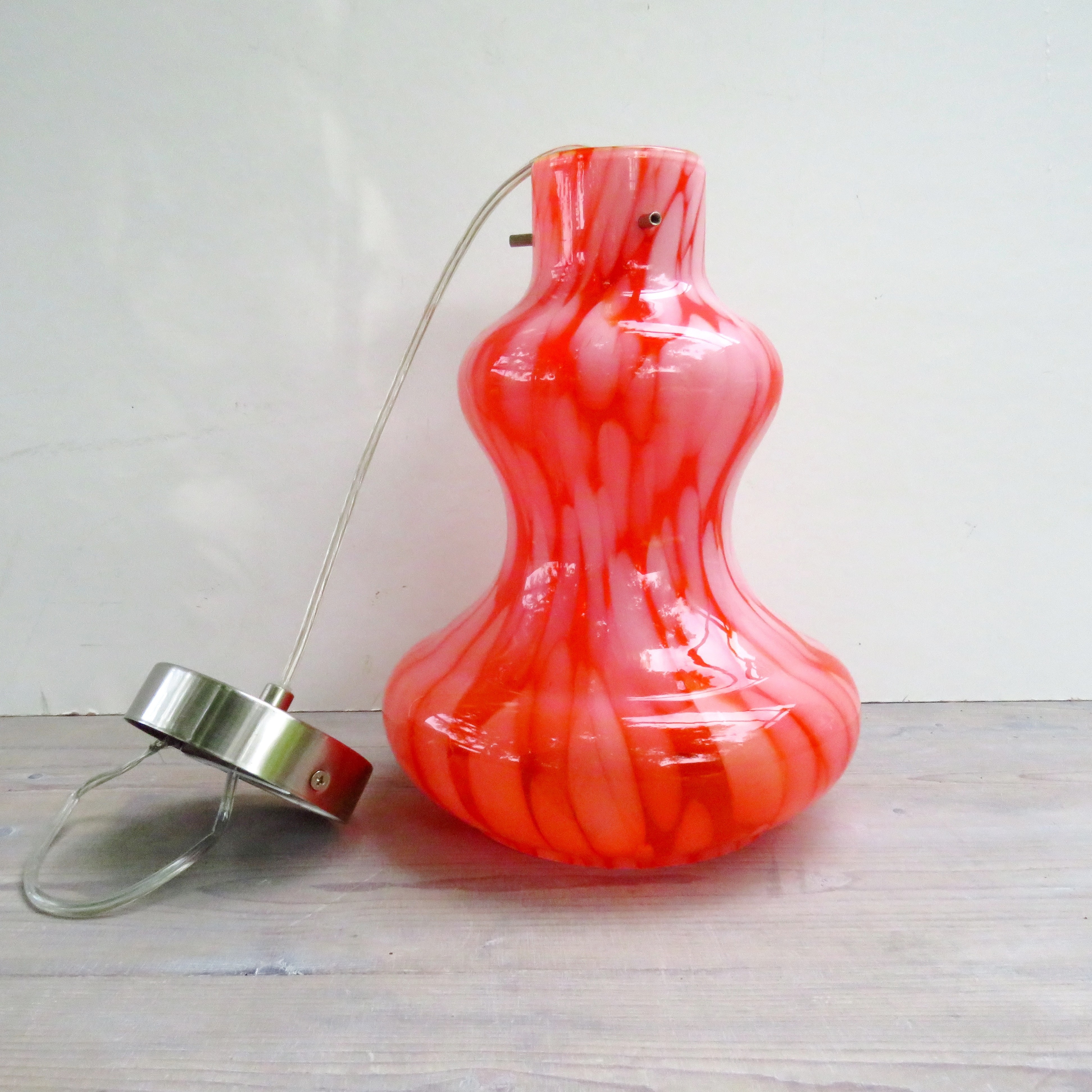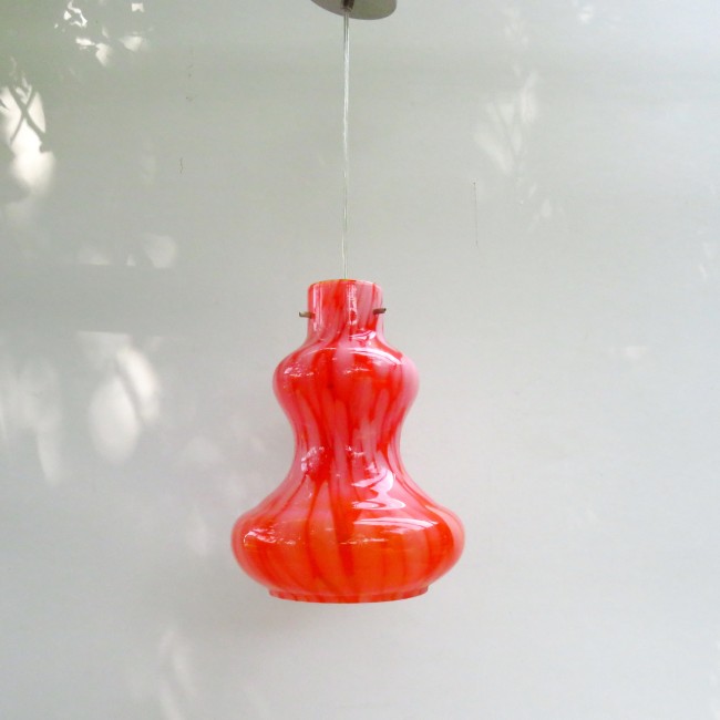 Vintage lampe à suspension avec abat-jour en verre rouge et blanc.