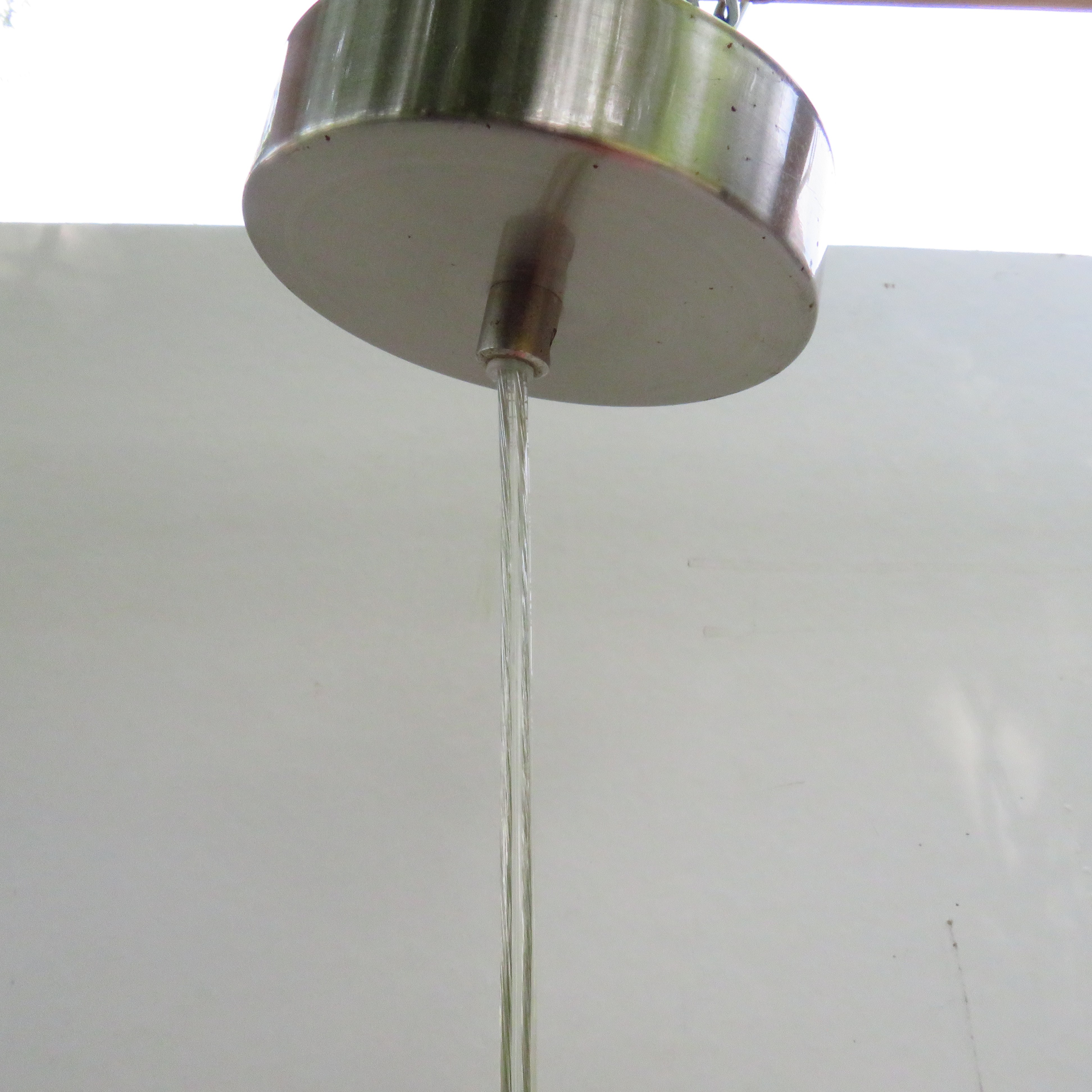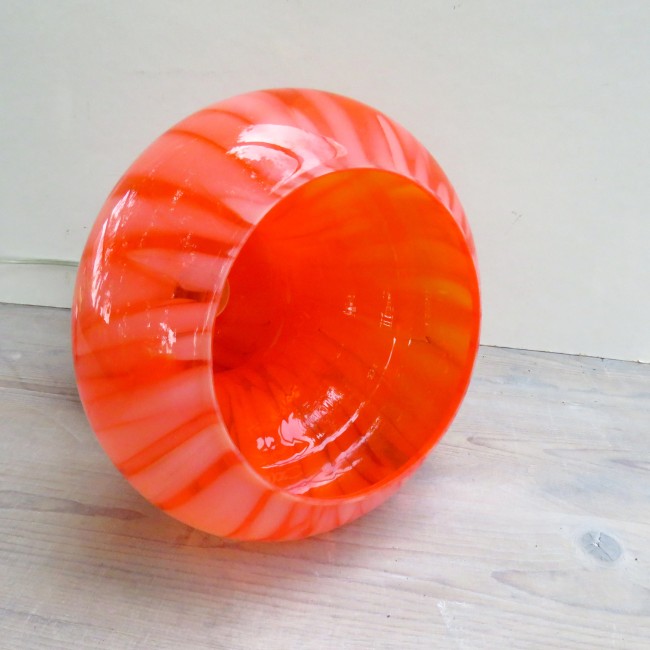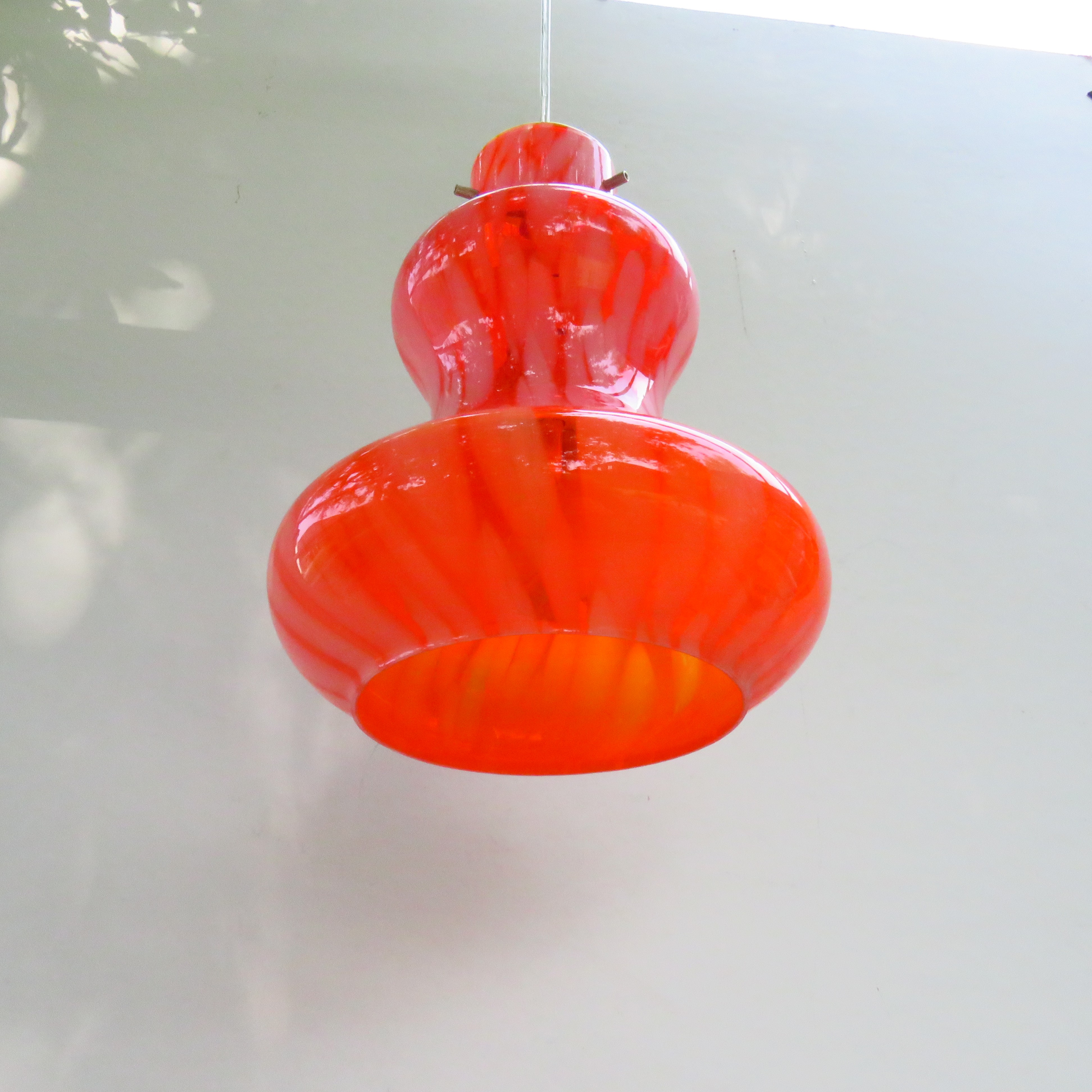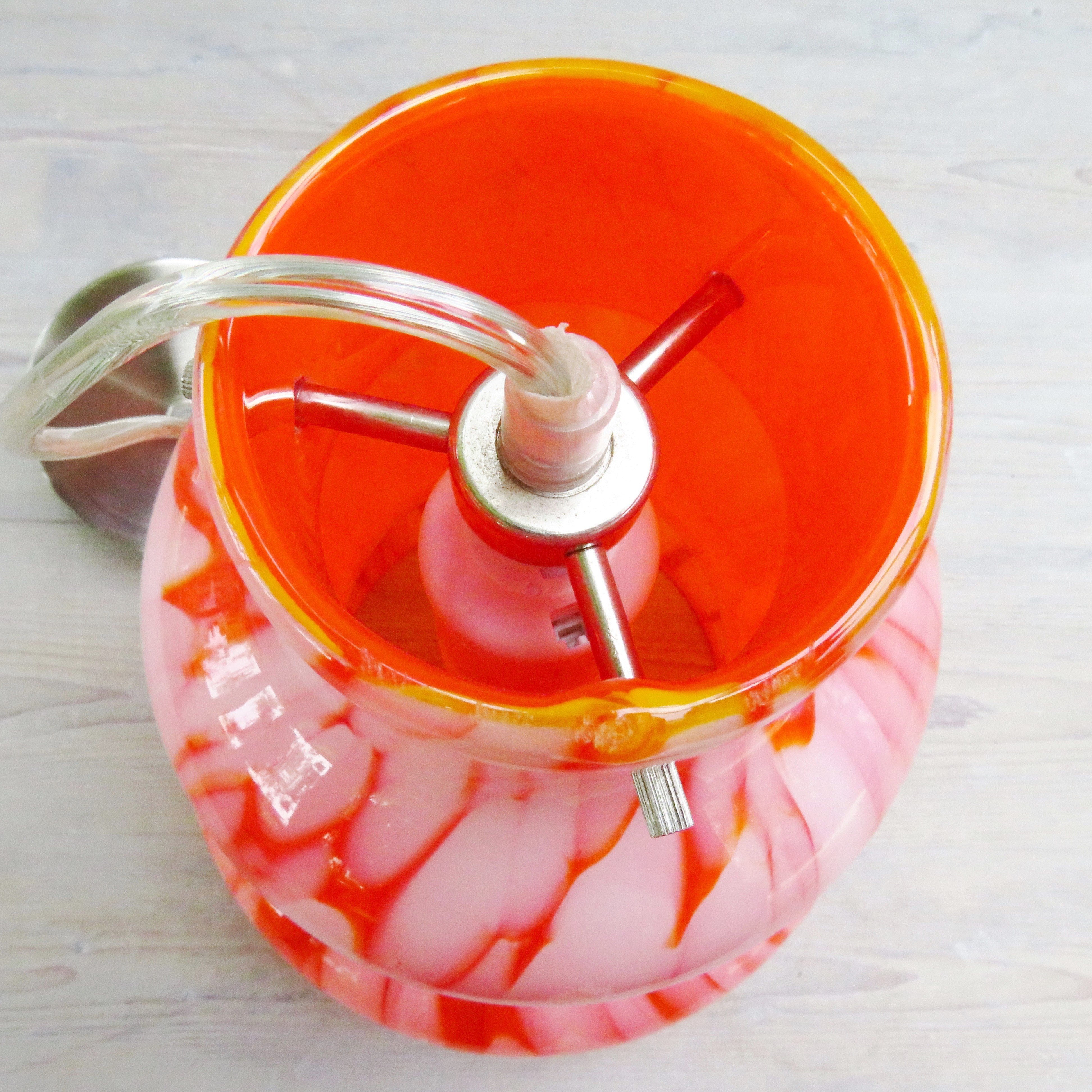 Vintage lampe à suspension avec abat-jour en verre rouge et blanc.