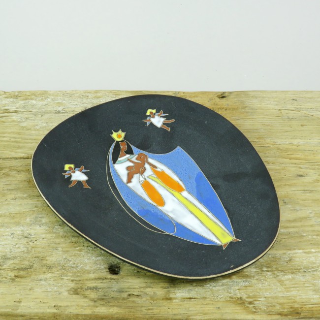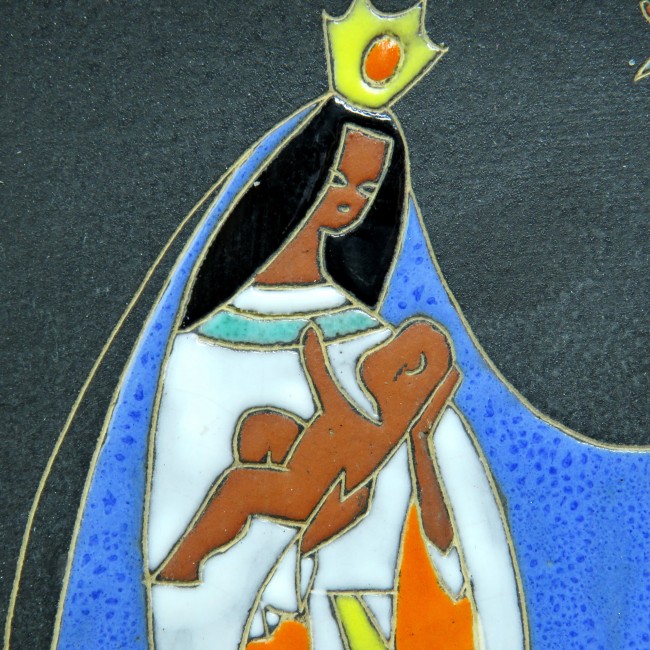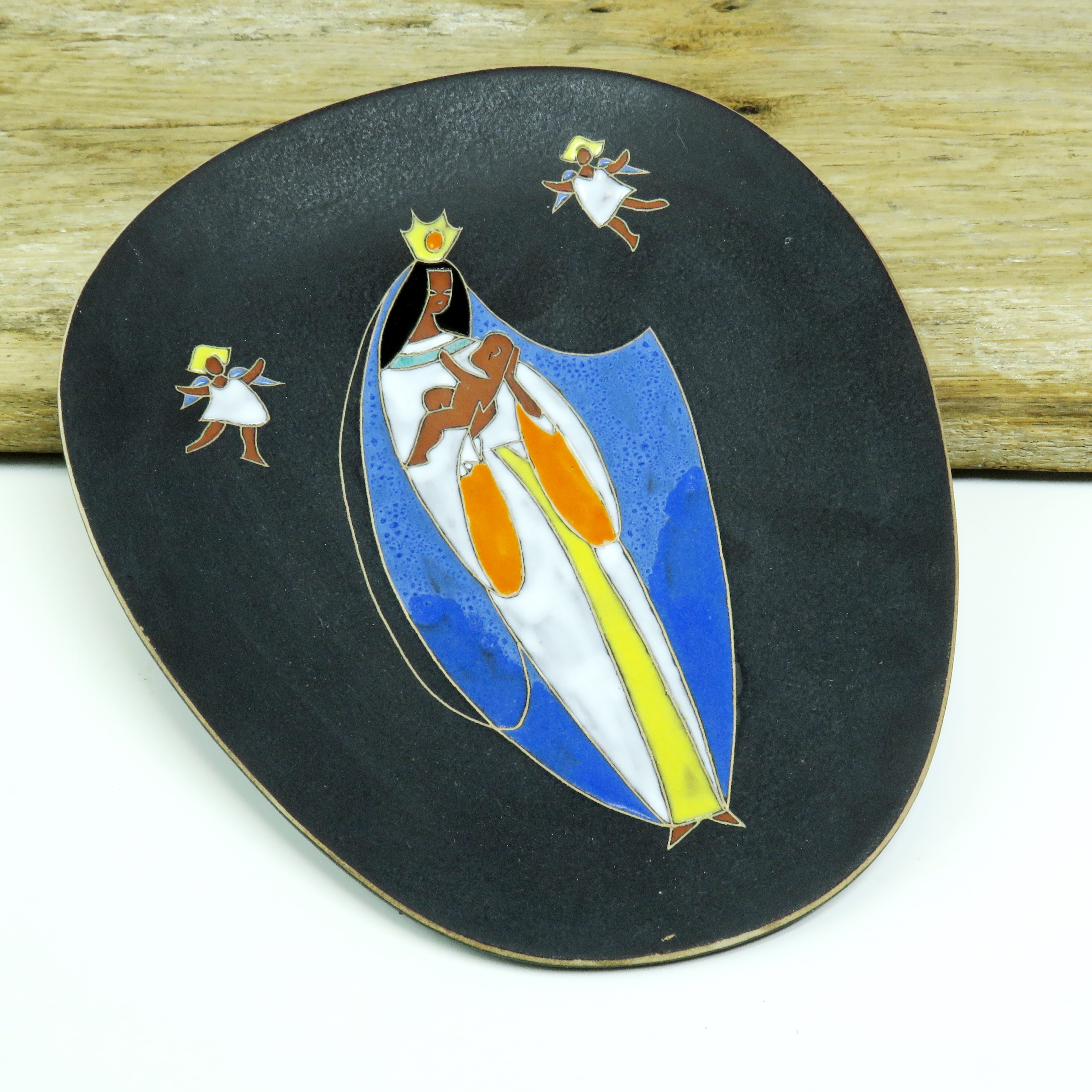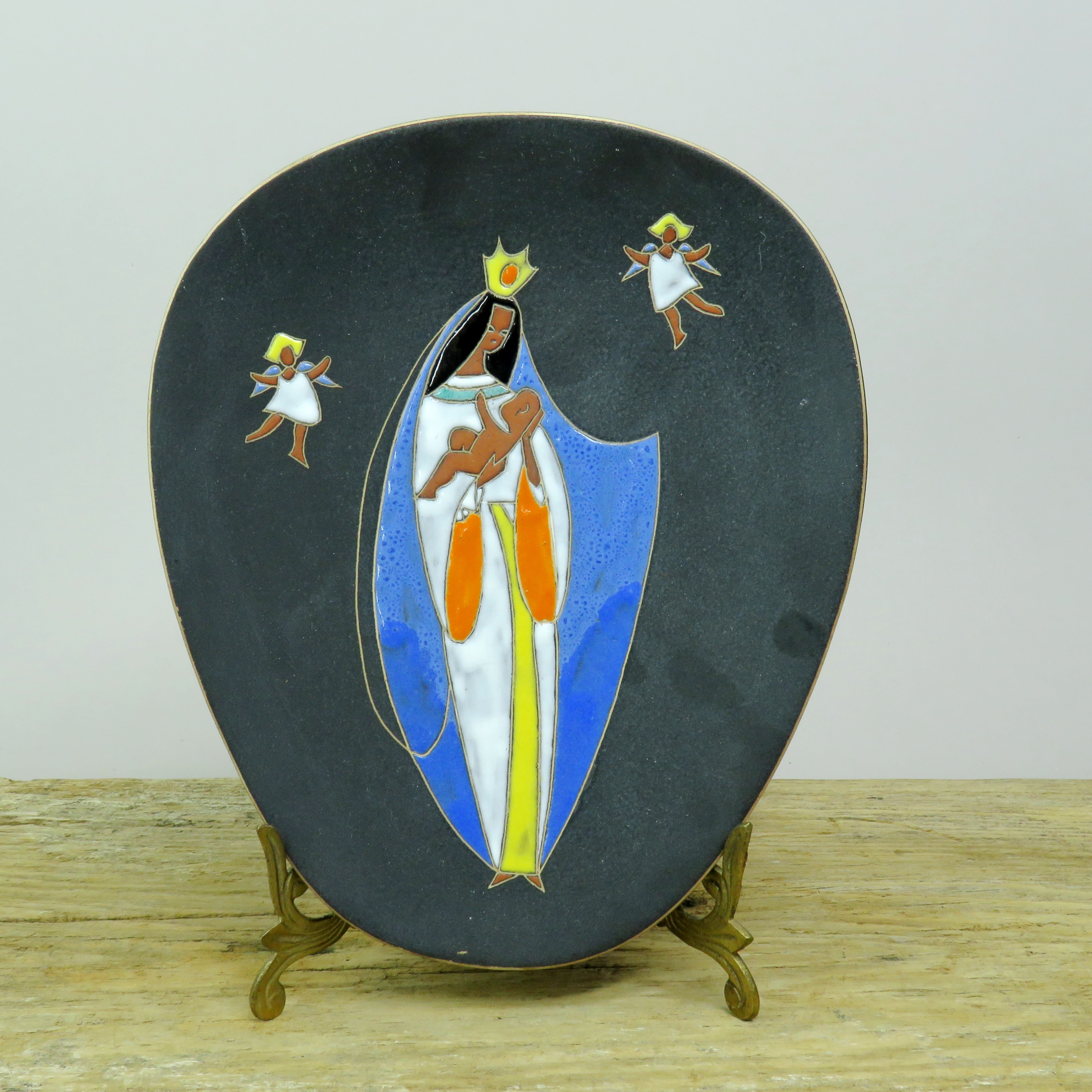 Vintage Décoration murale religieuse allemande en céramique, représentant la Vierge à l'Enfant.