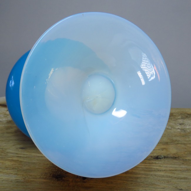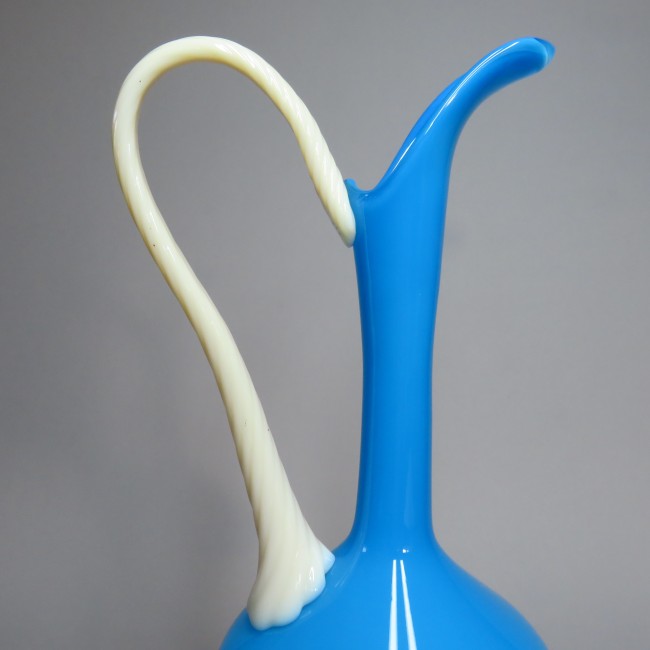 Large vintage italian pitcher vase, made in a blue opaline glass with white base.