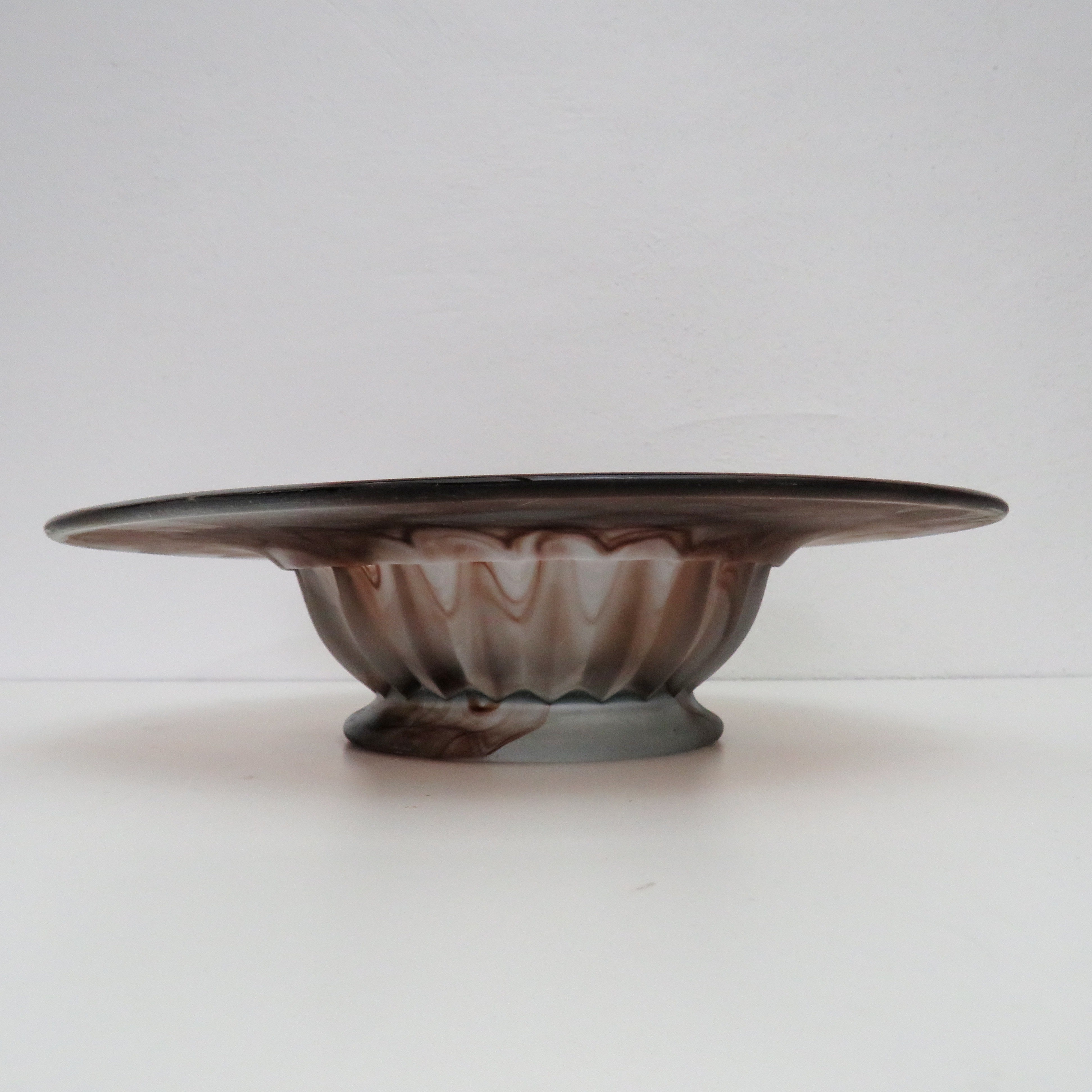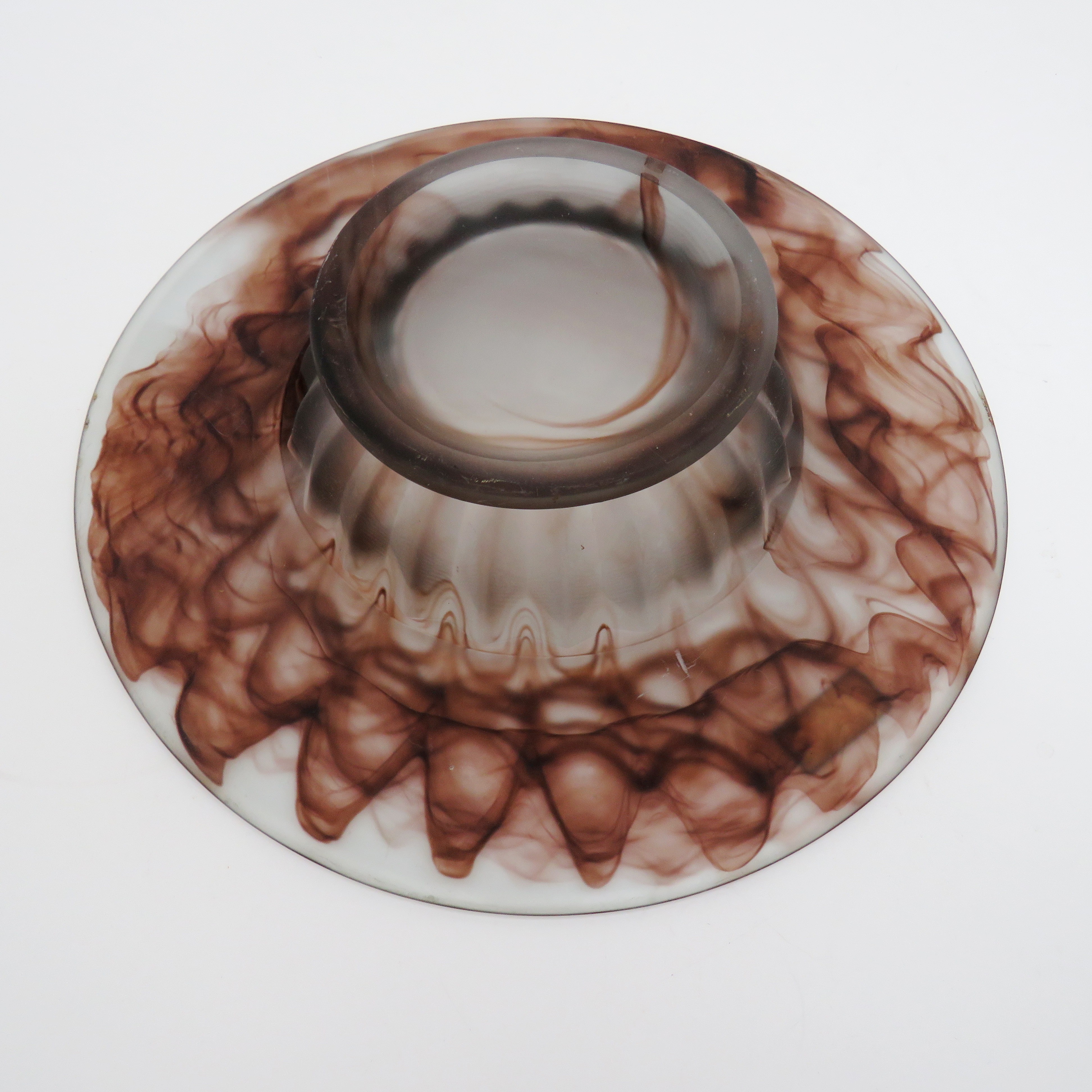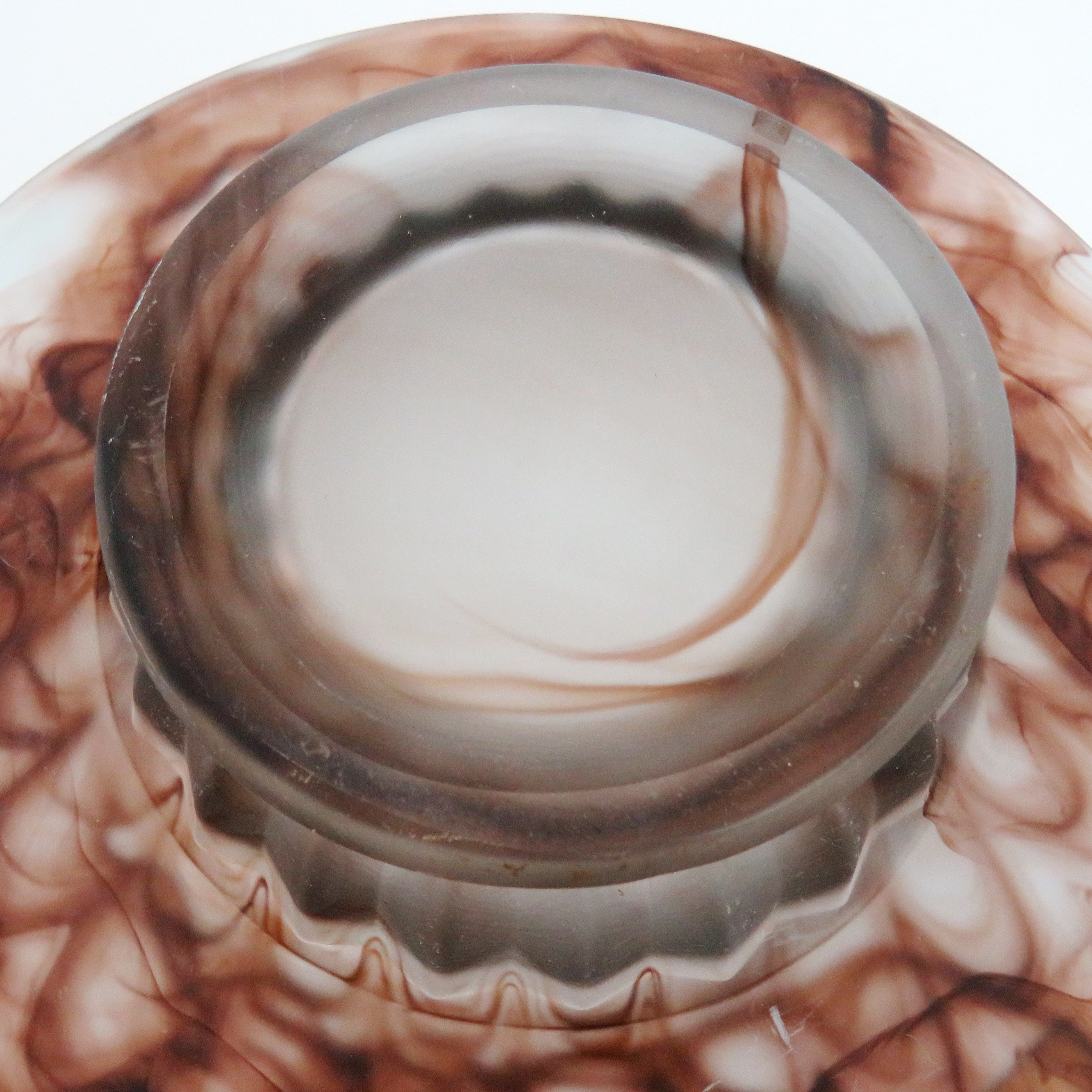 Striking Art Deco sepia brown cloud glass footed bowl, from the Oralit series by Walther & Söhne