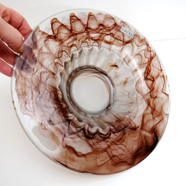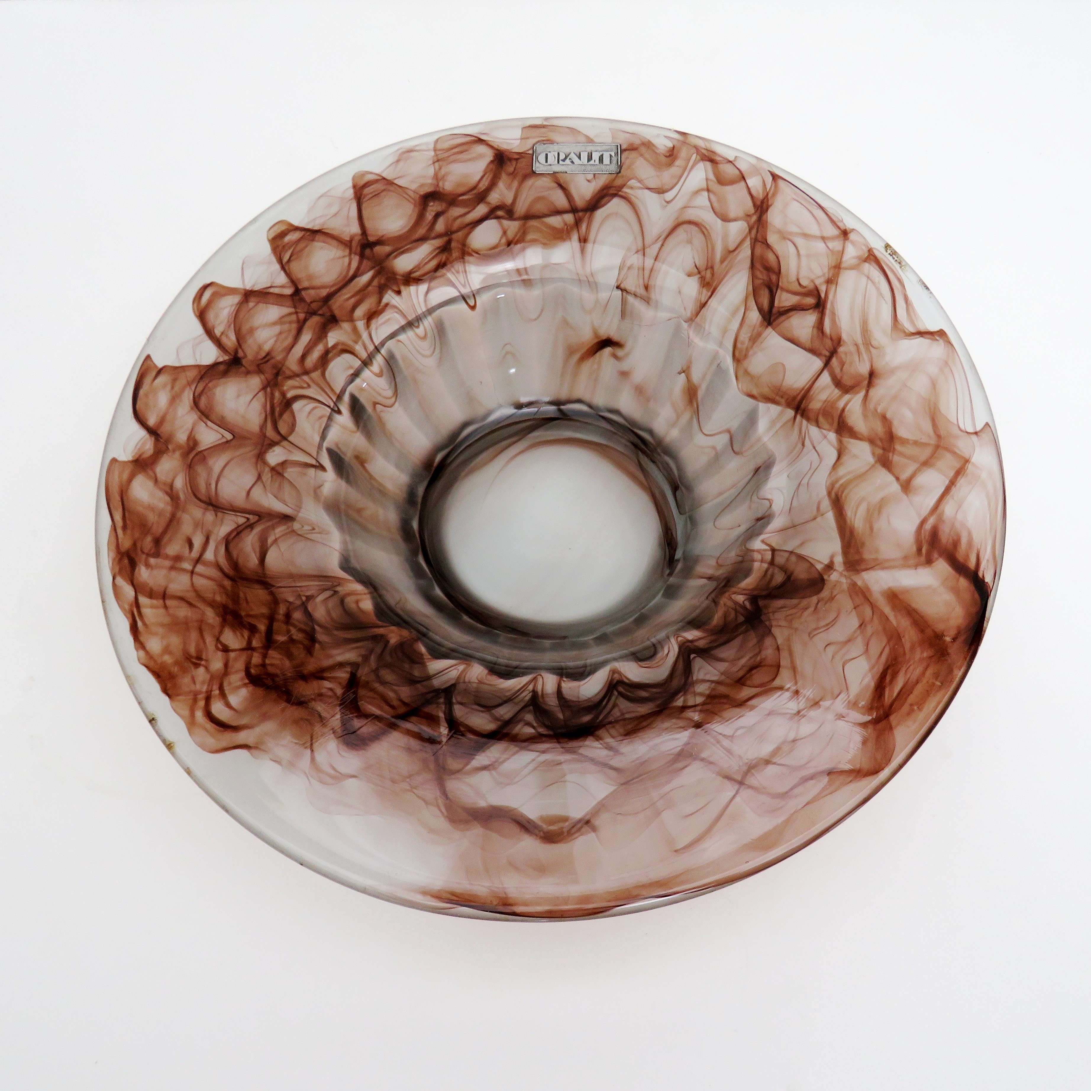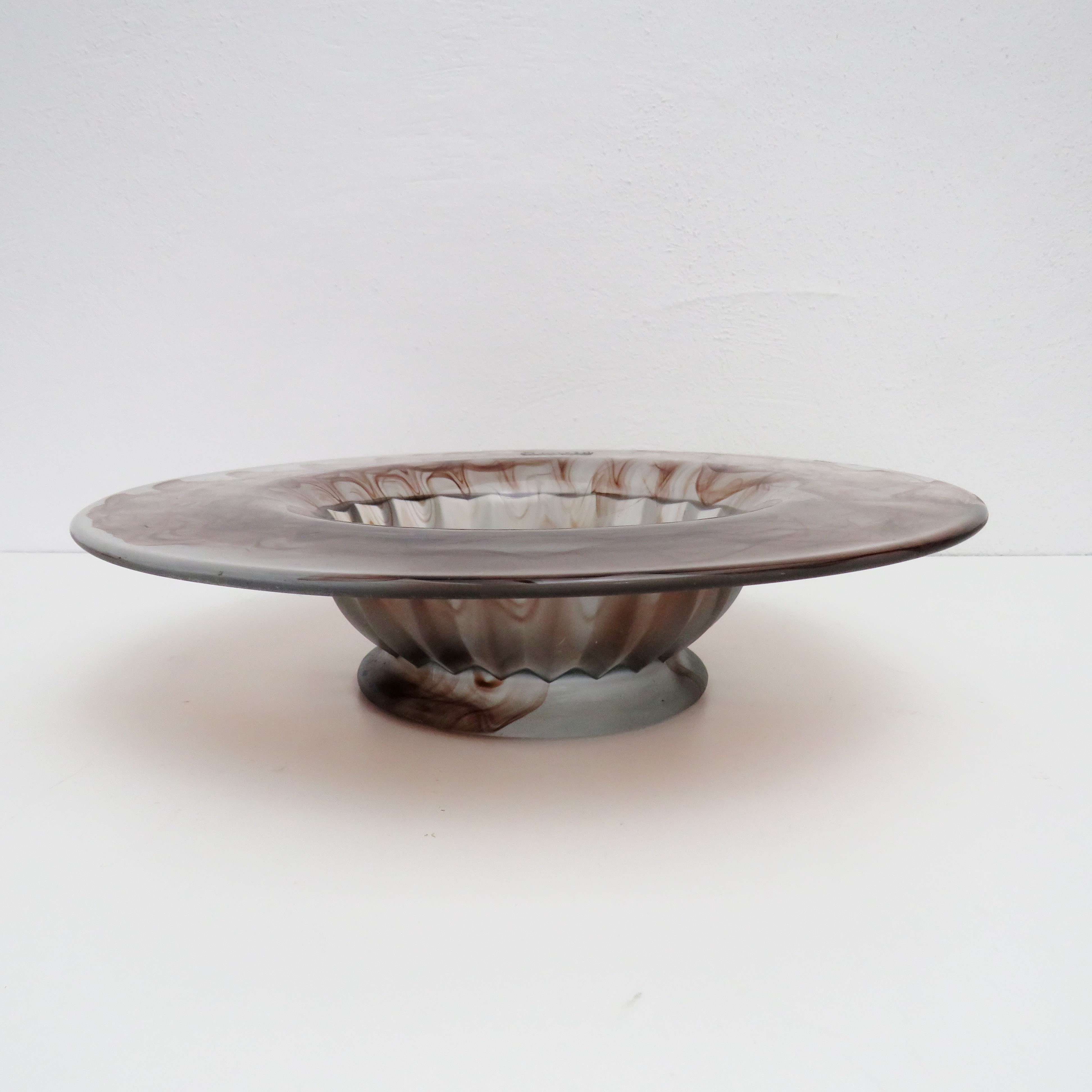 Striking Art Deco sepia brown cloud glass footed bowl, from the Oralit series by Walther & Söhne