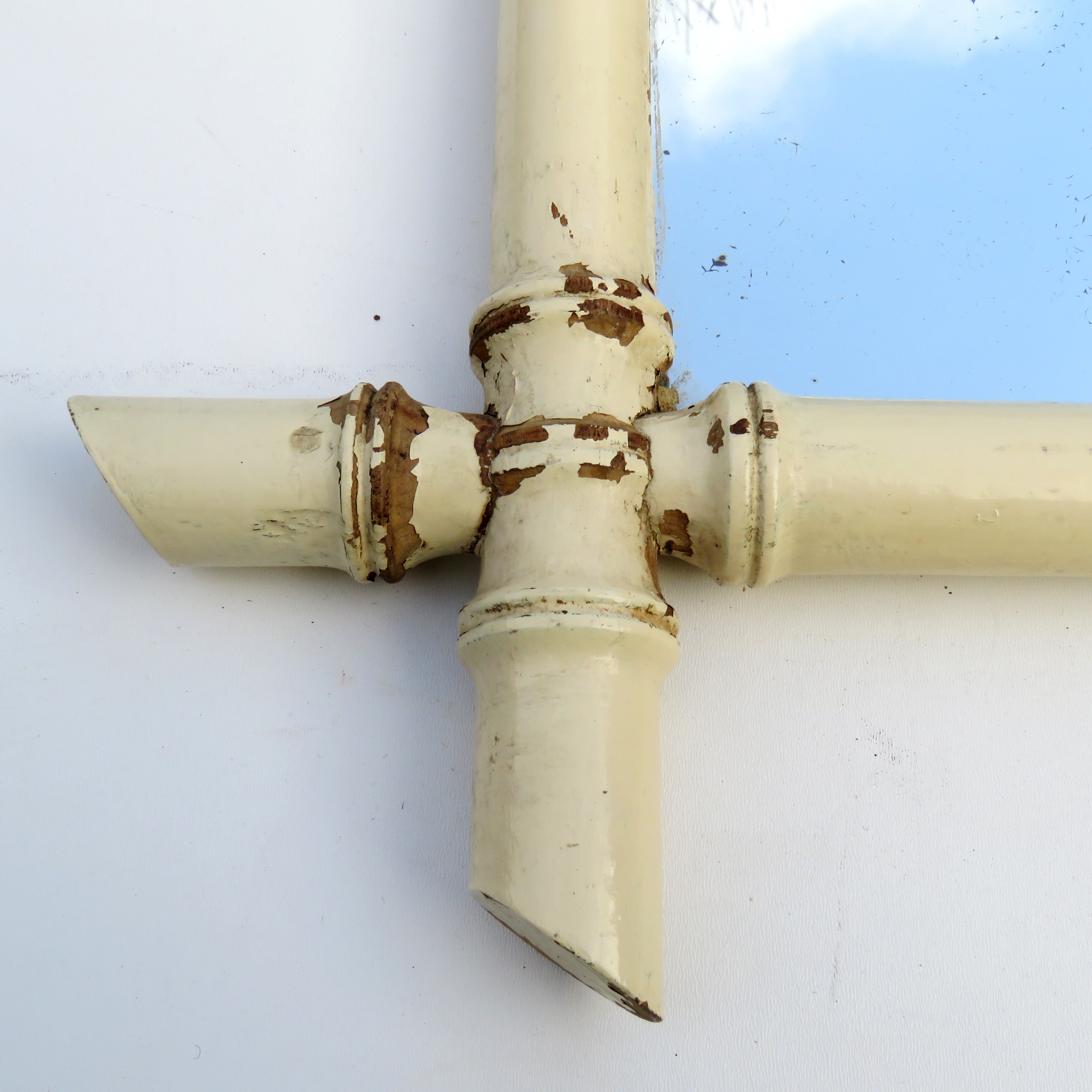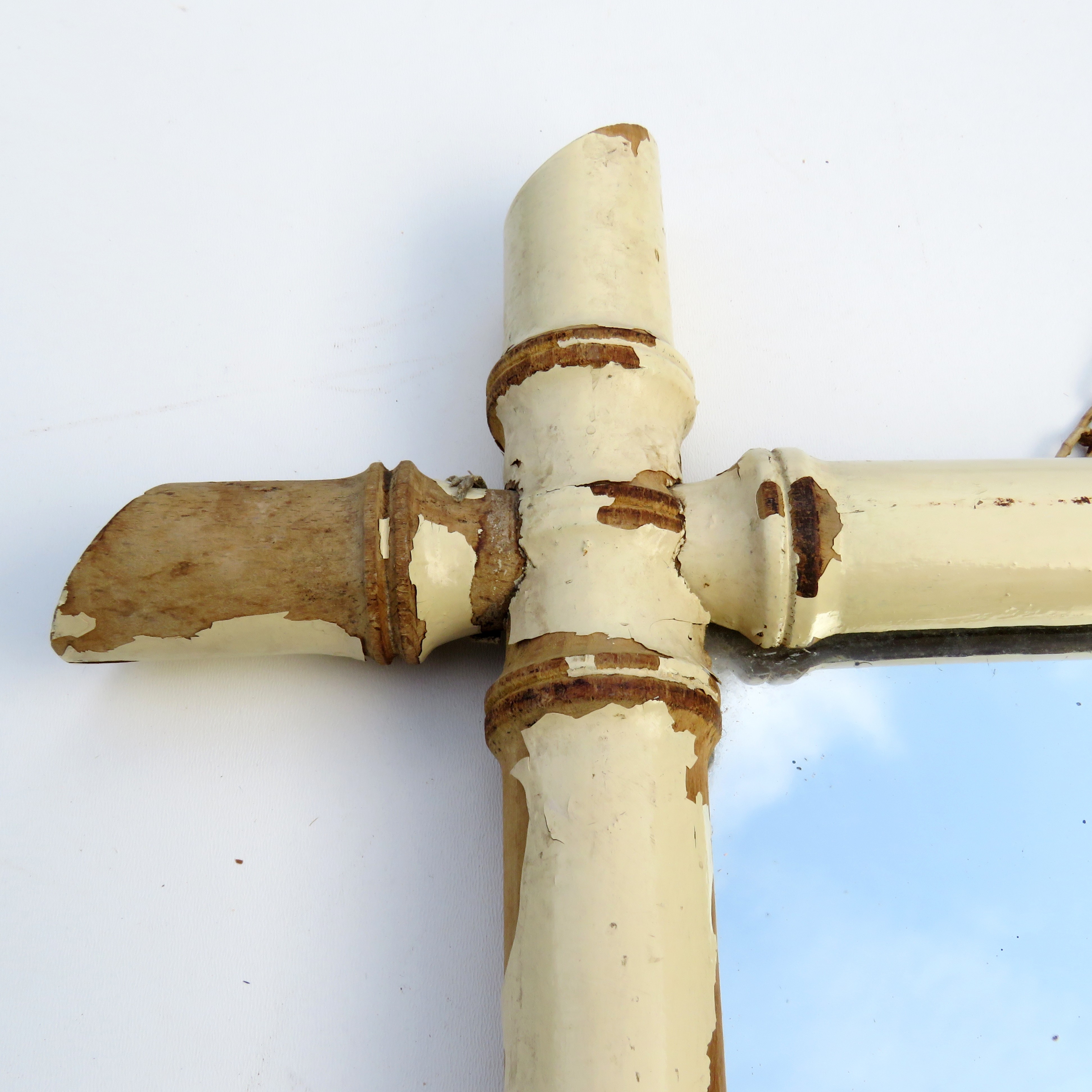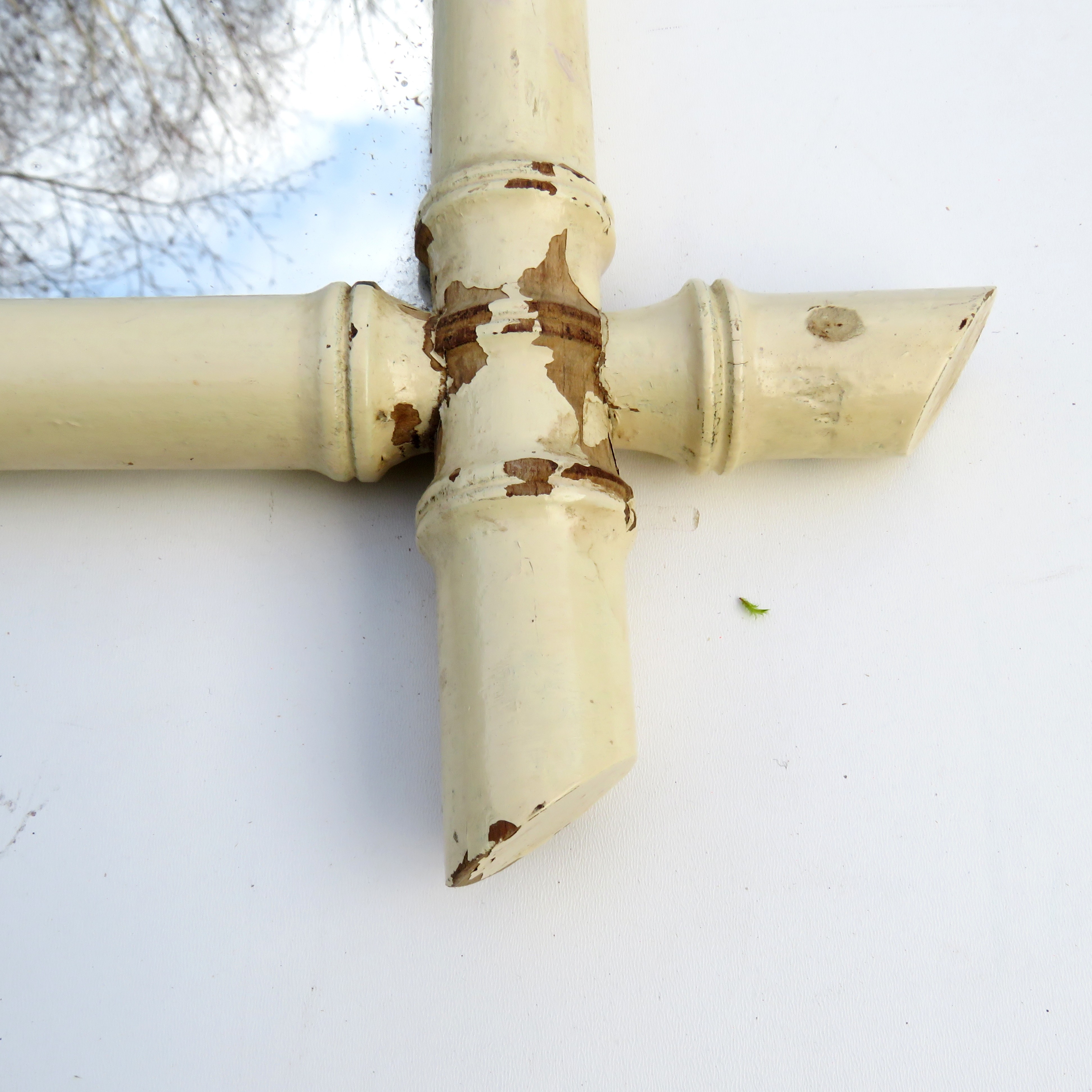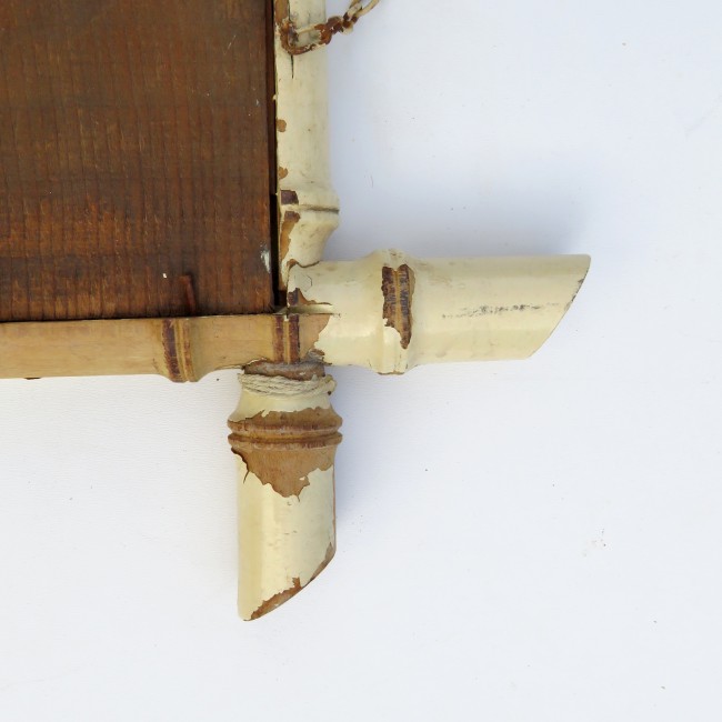 Antique, white painted, wooden mirror with hand carved bamboo pattern