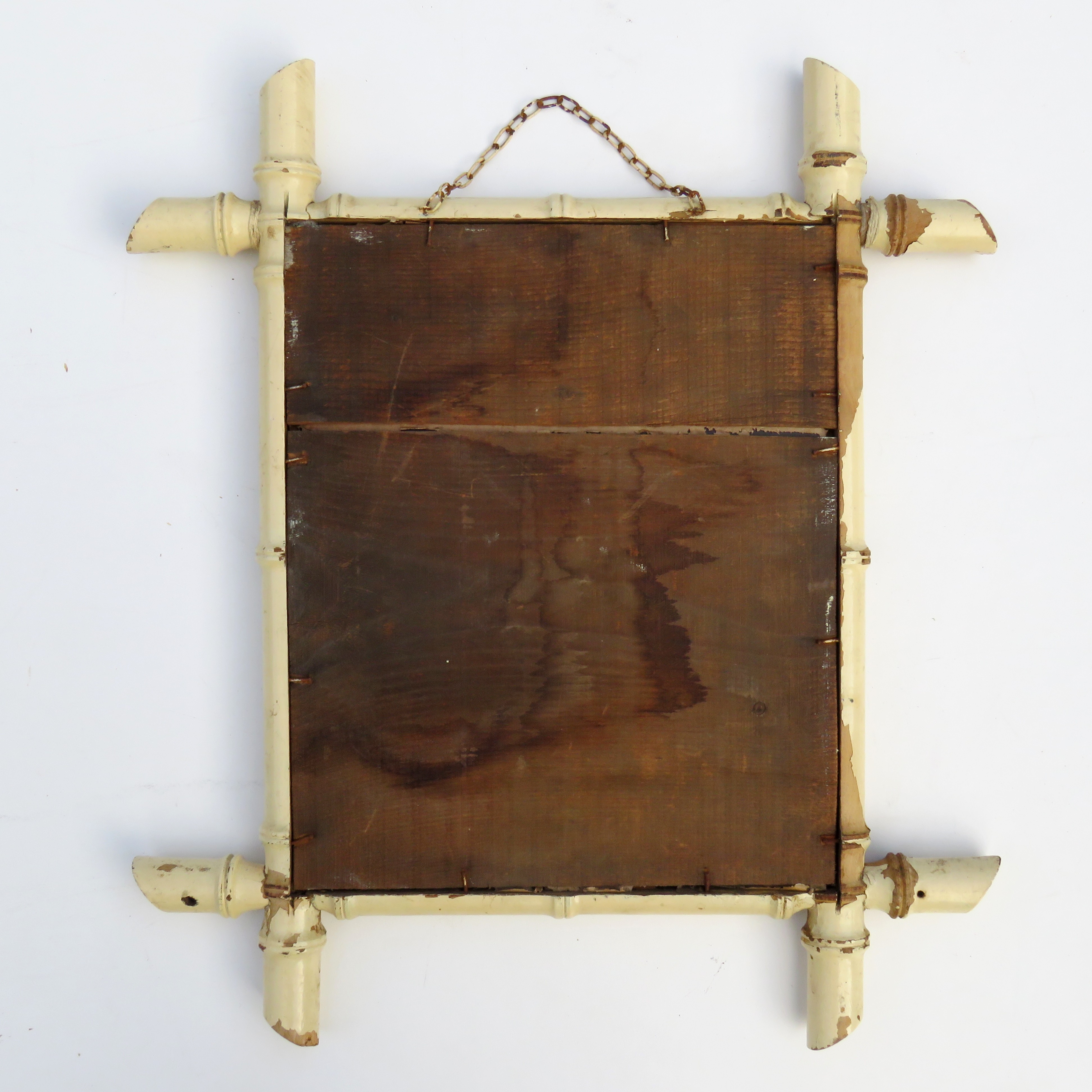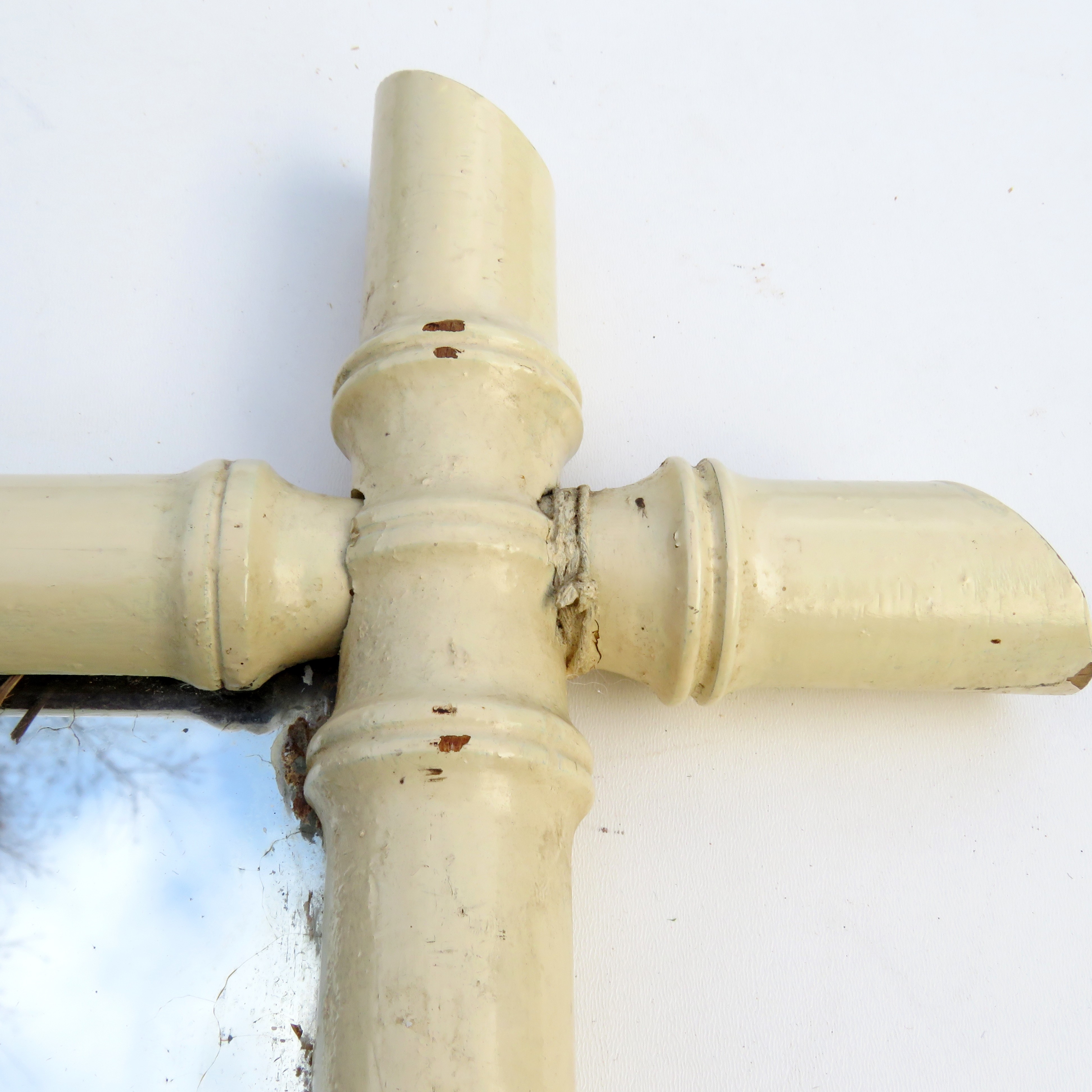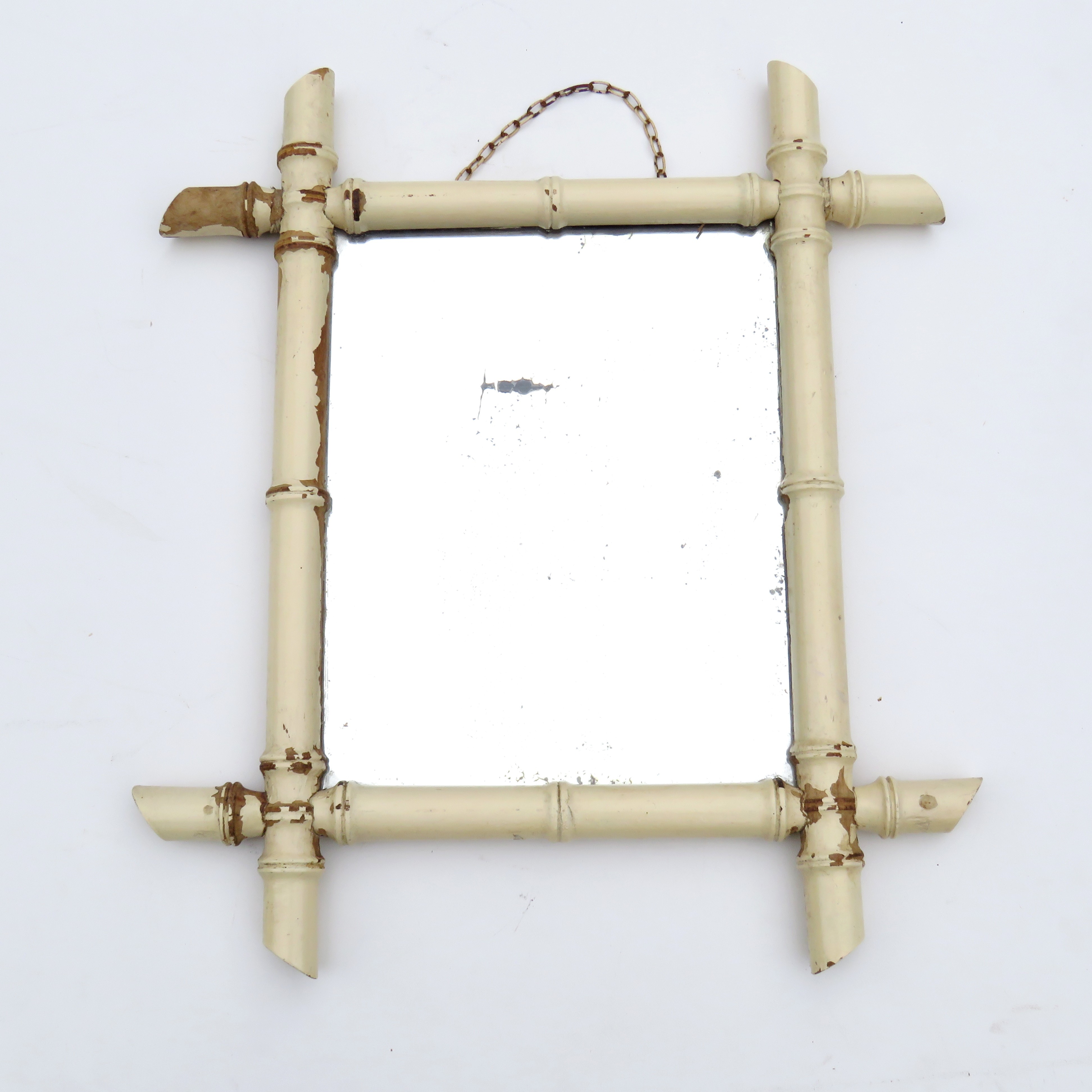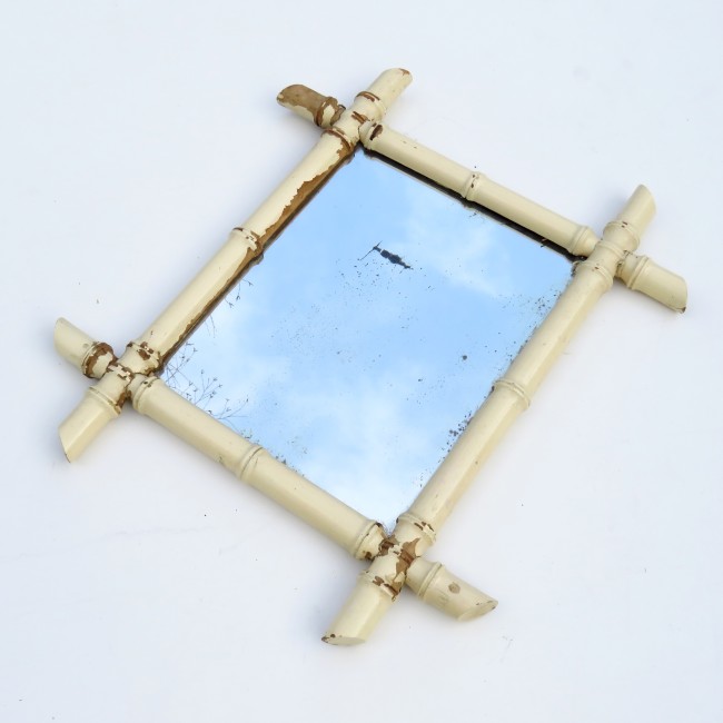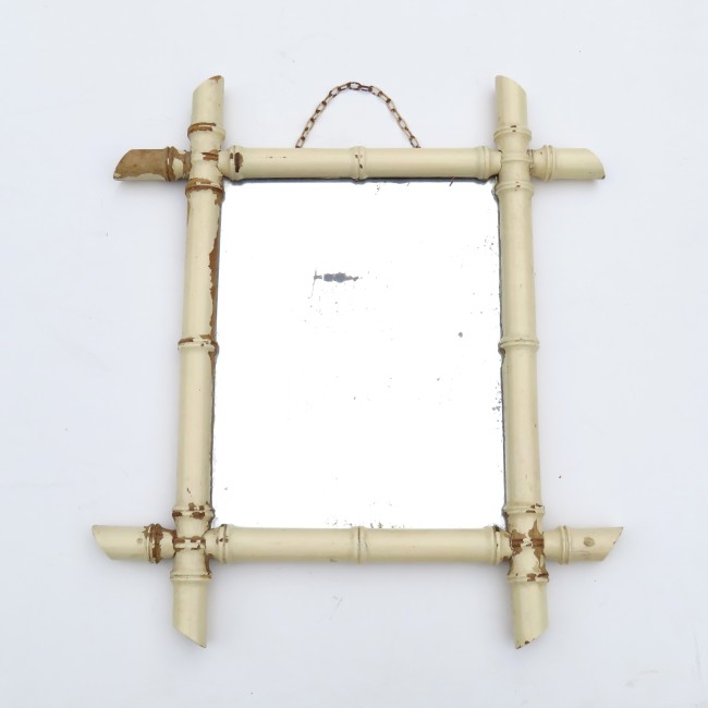 Antique, white painted, wooden mirror with hand carved bamboo pattern