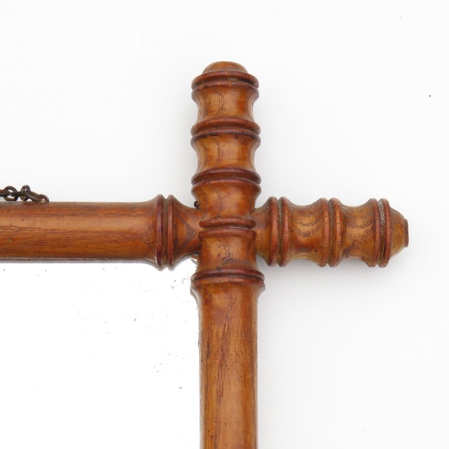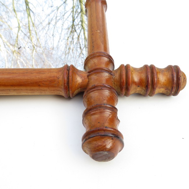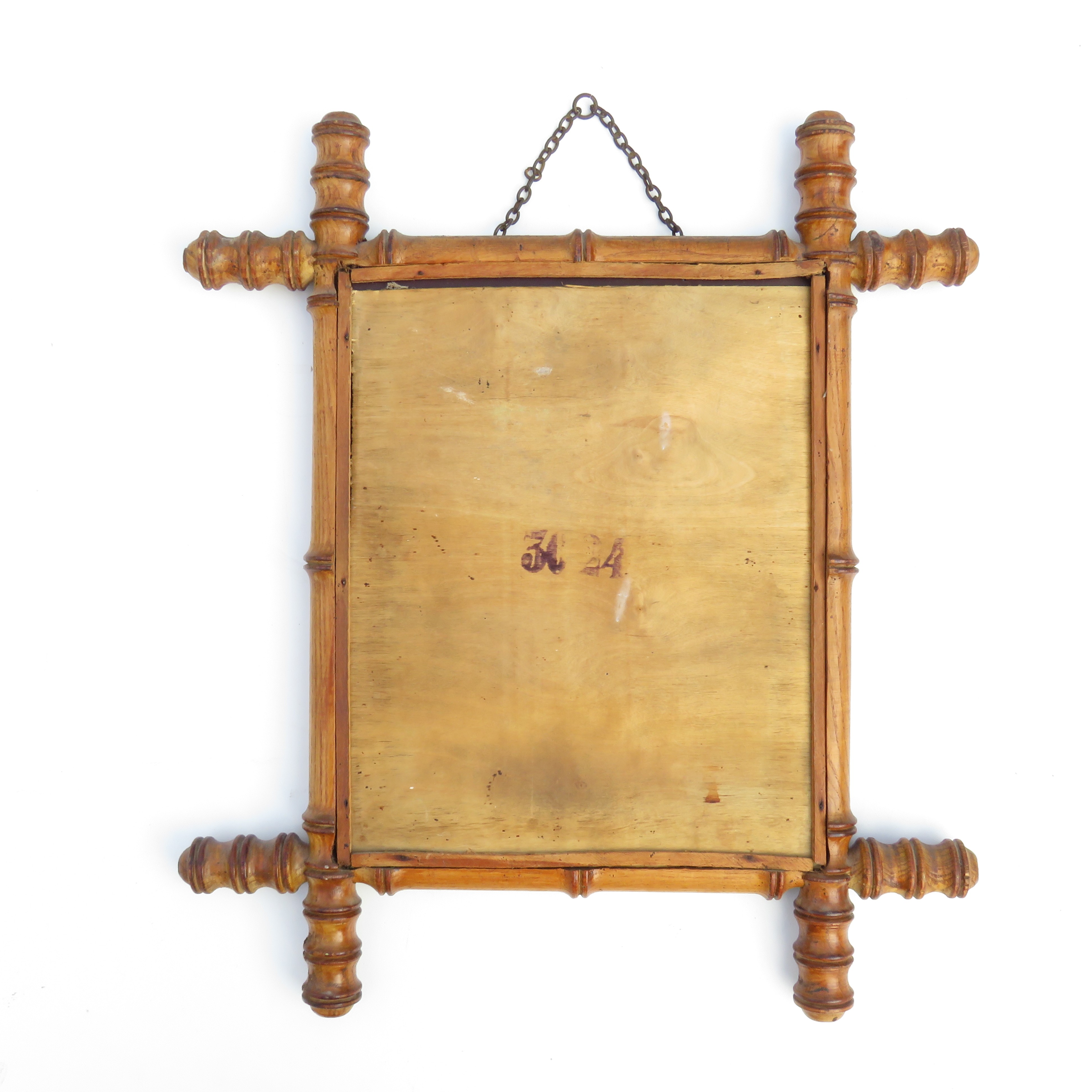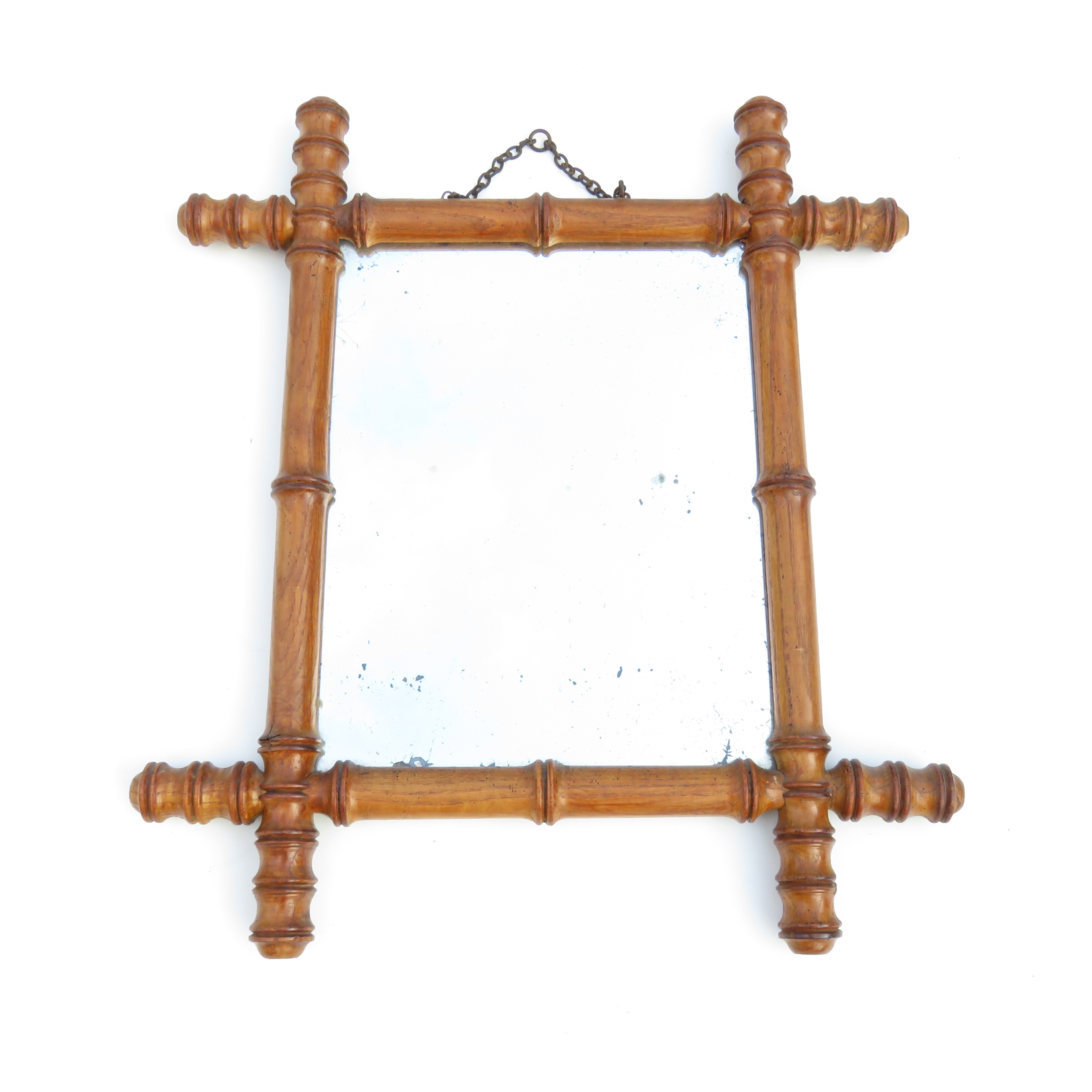 Antique hand carved wooden mirror with bamboo pattern with original glass.