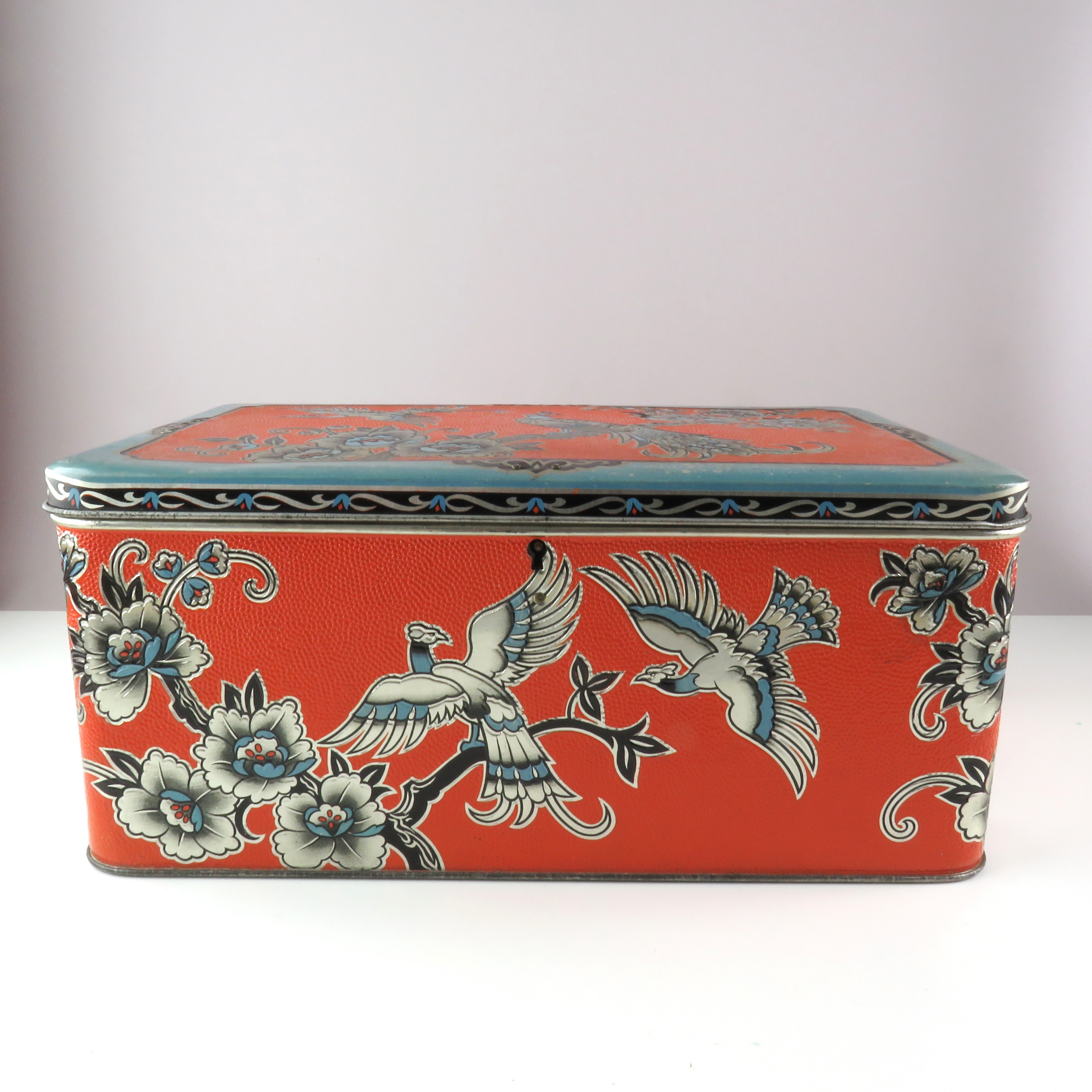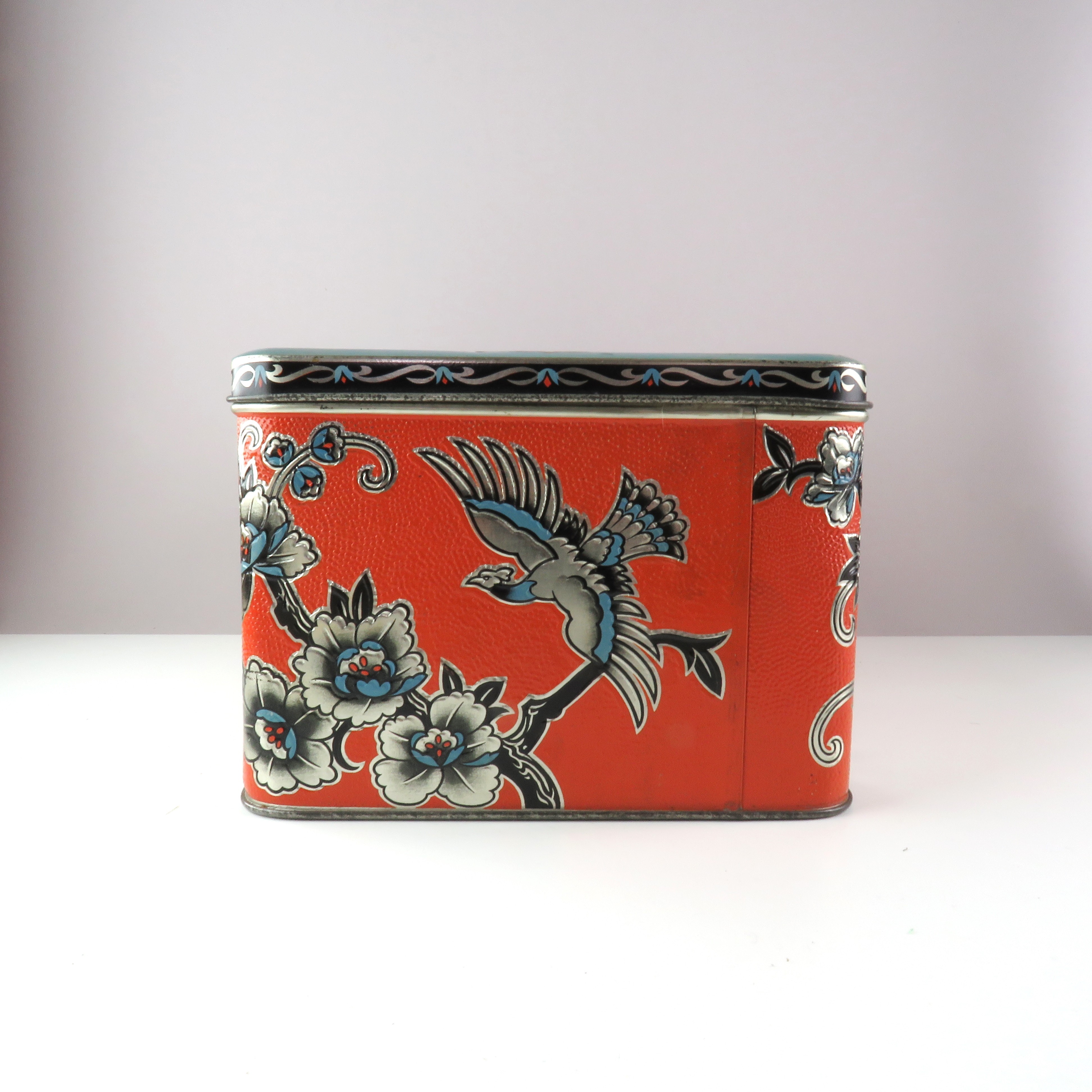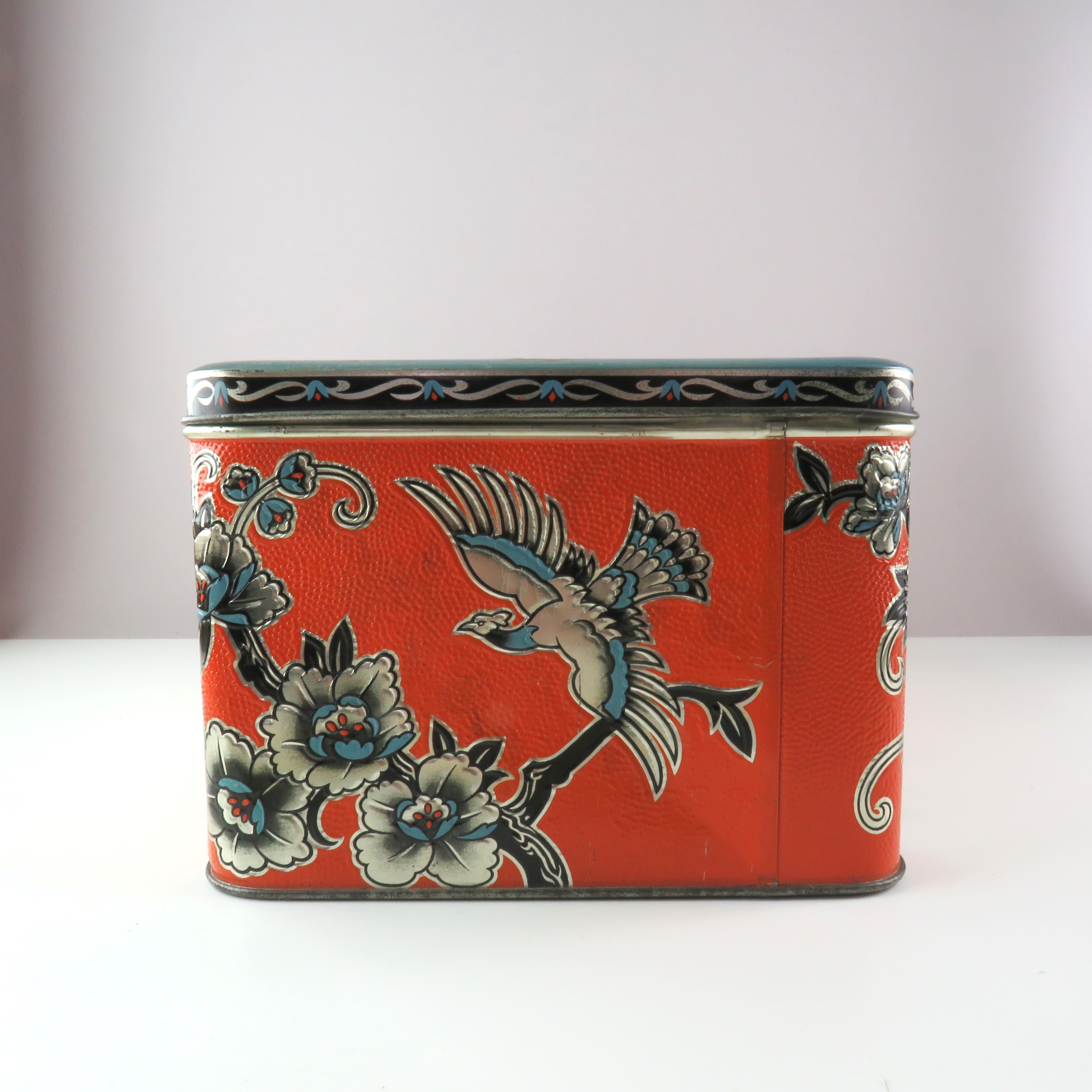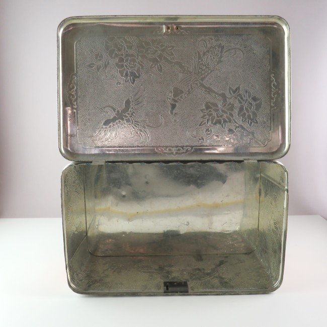 Boîte a fer blanc vintage, décoration art nouveau avec oiseau.