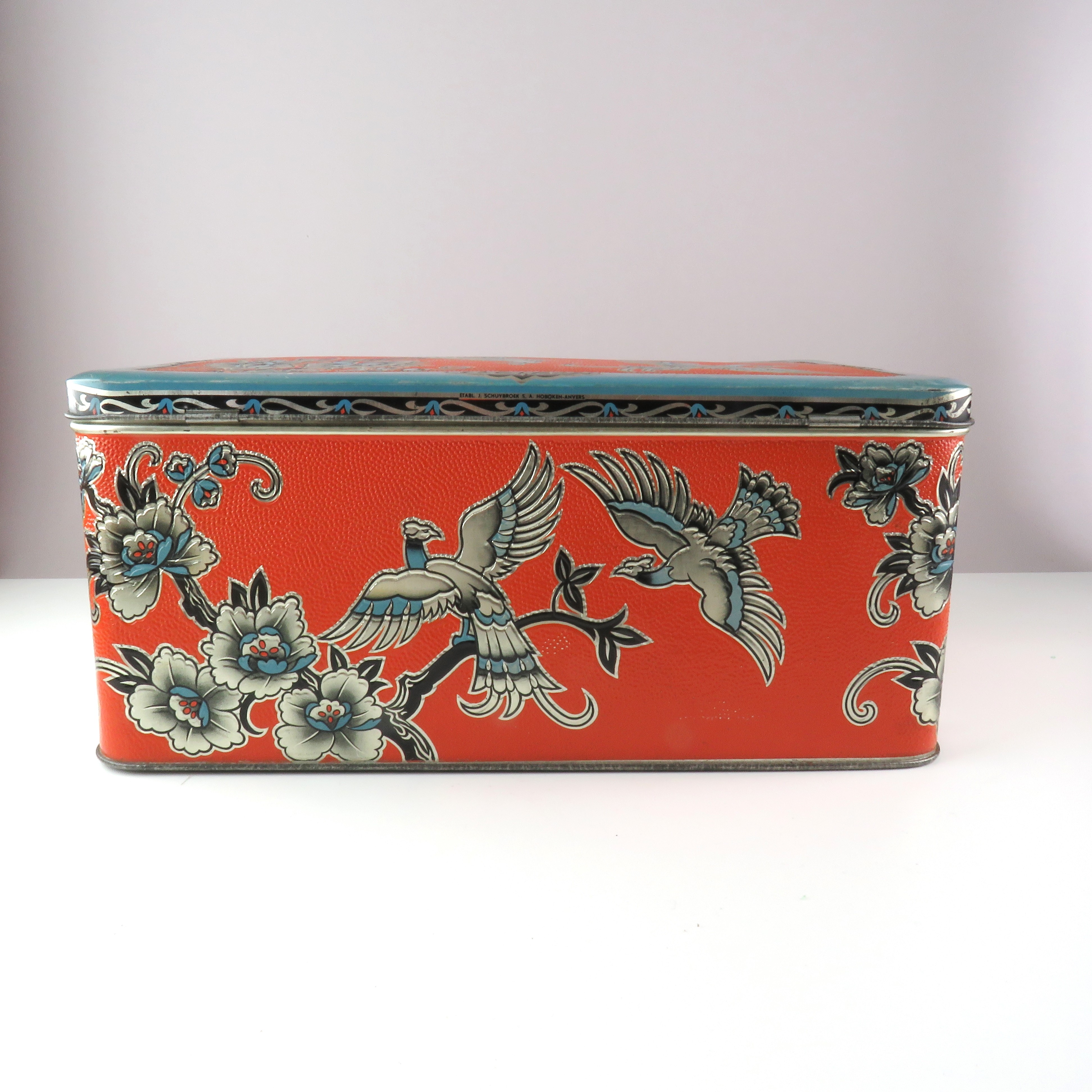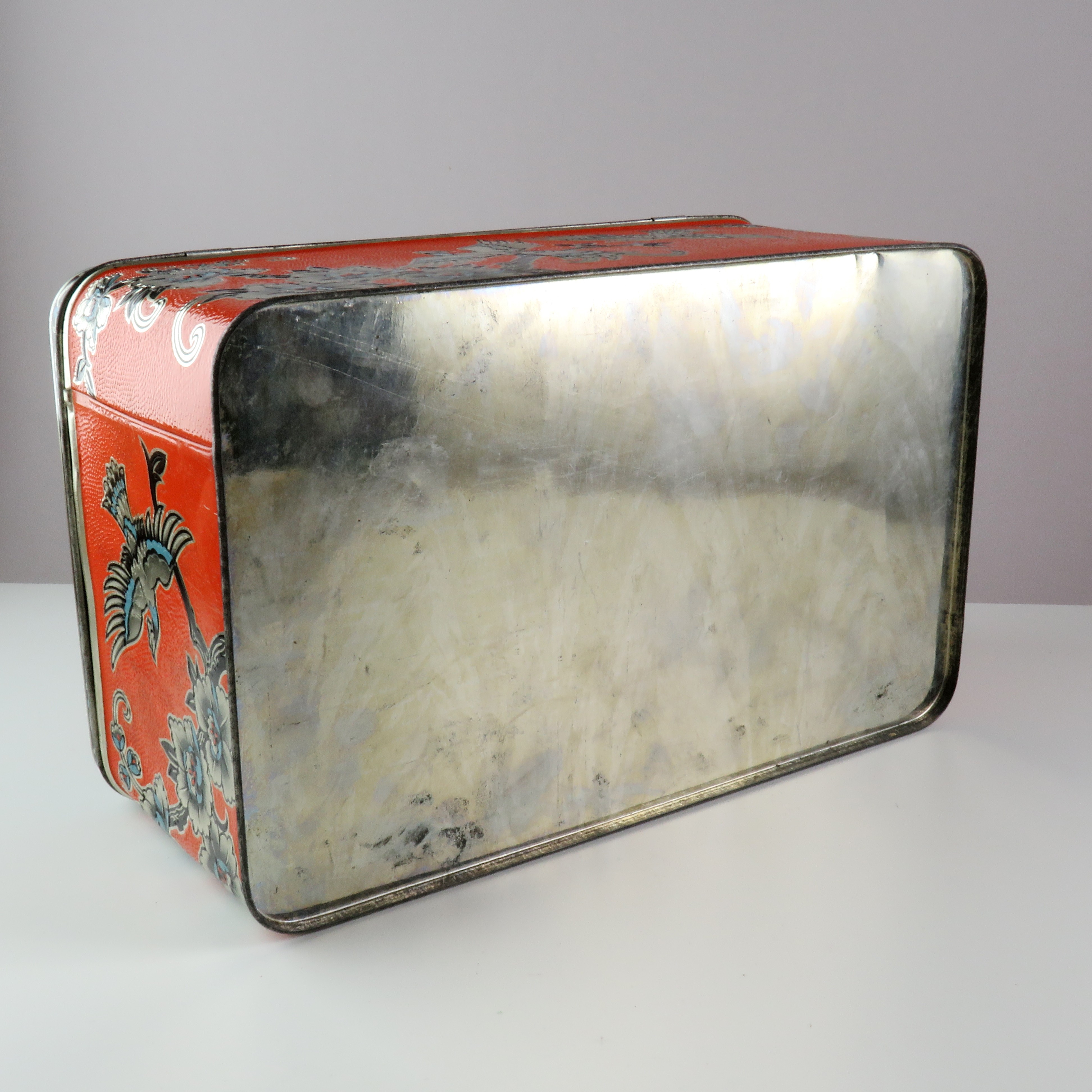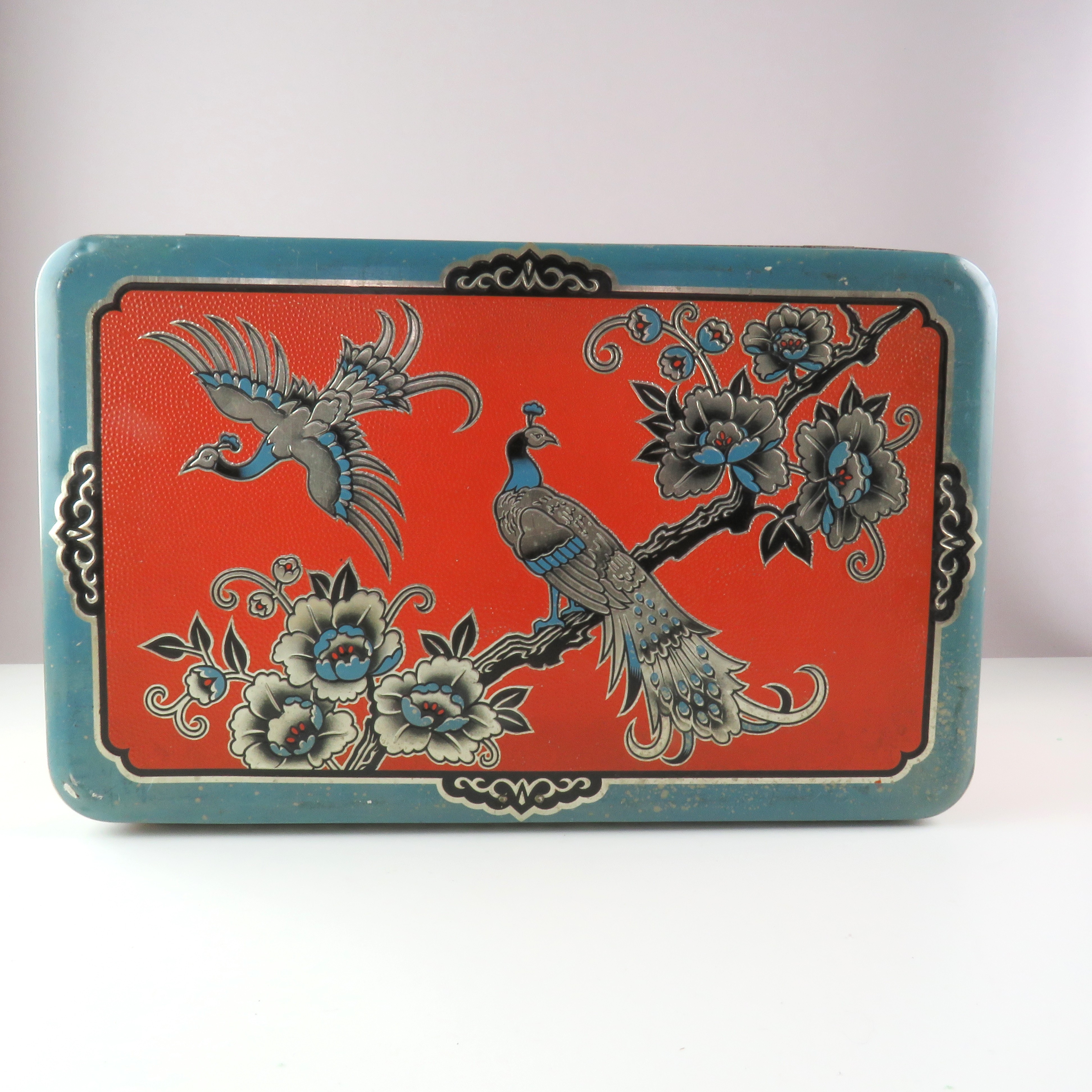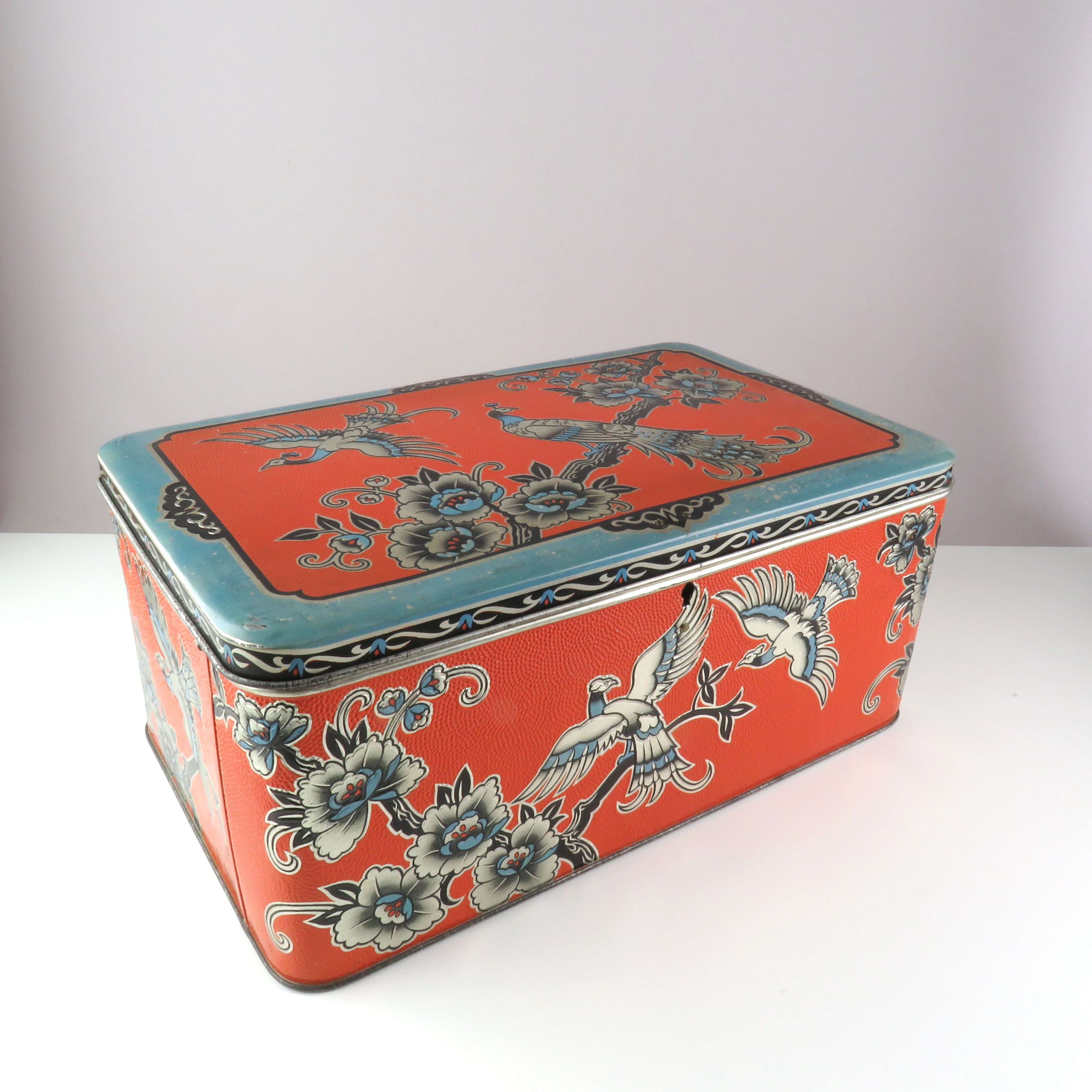 Boîte a fer blanc vintage, décoration art nouveau avec oiseau.