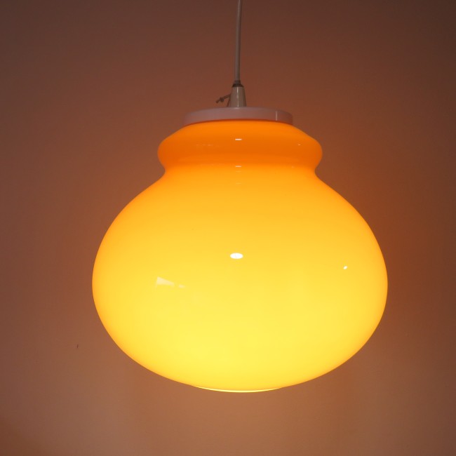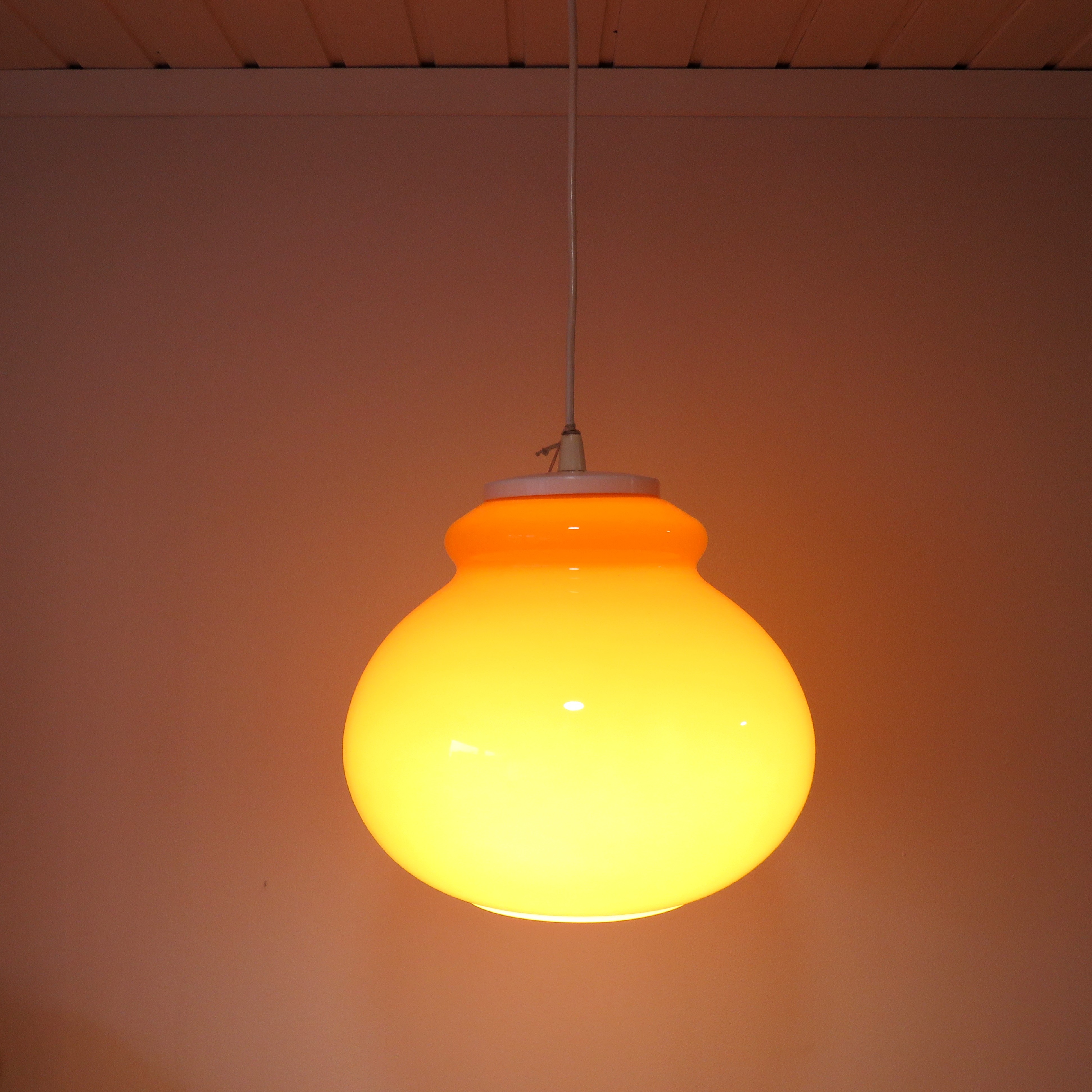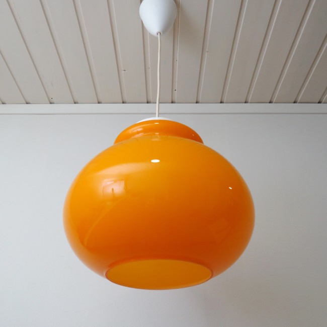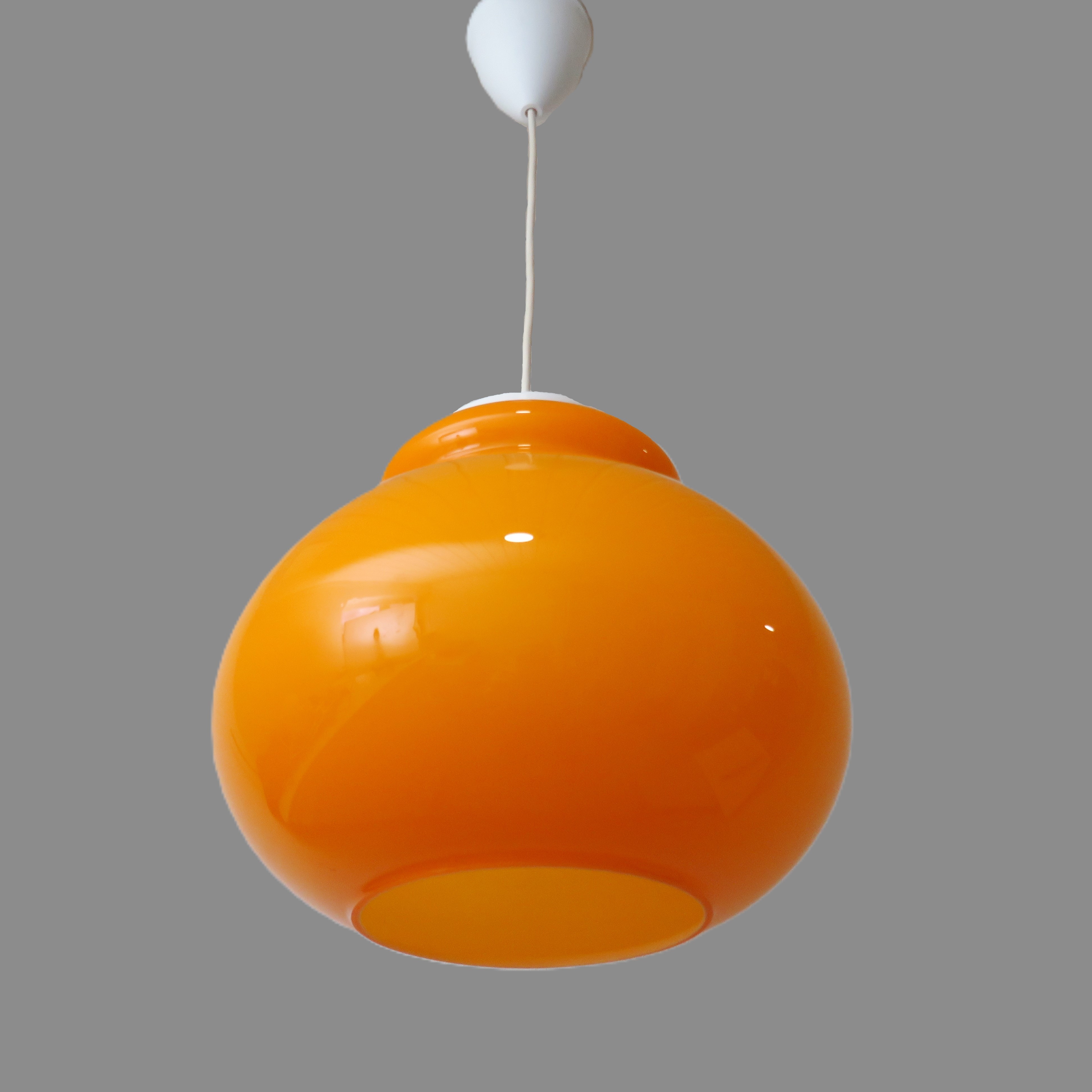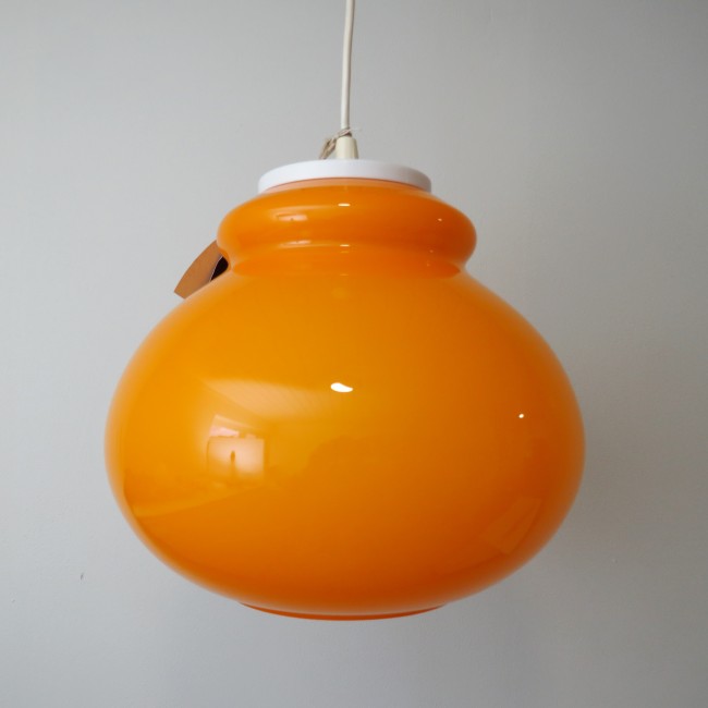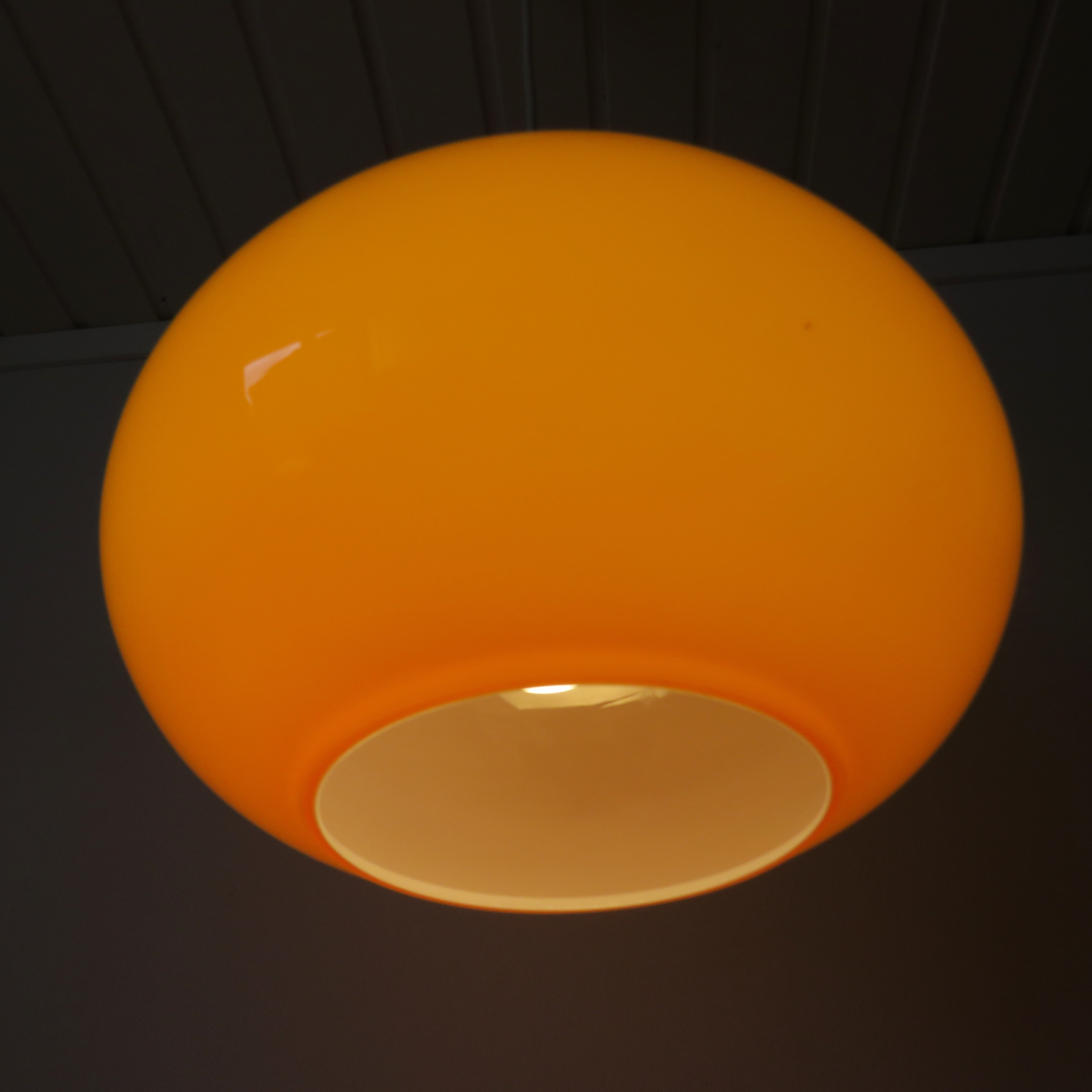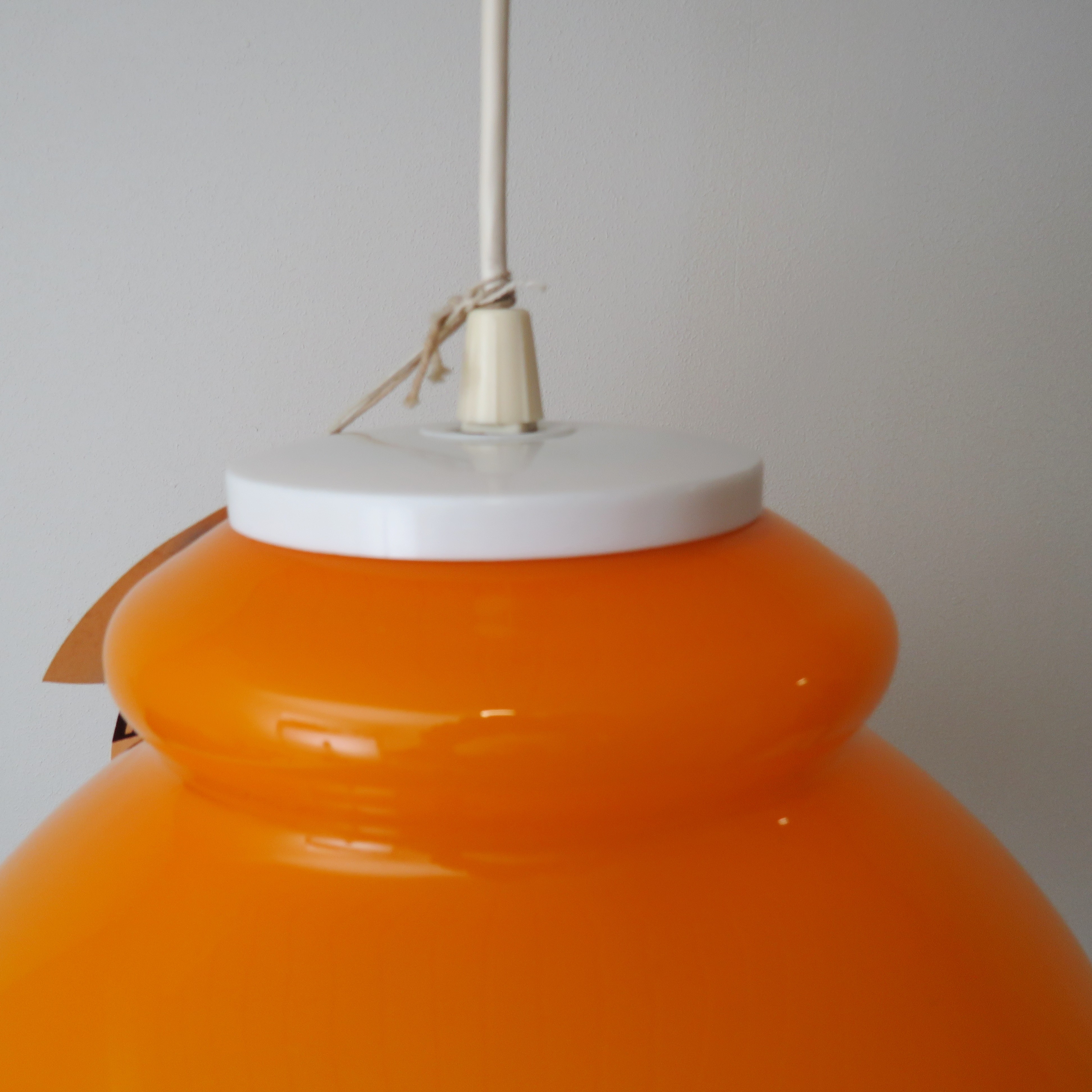 Vintage lampe à suspension avec abat-jour en verre orange.