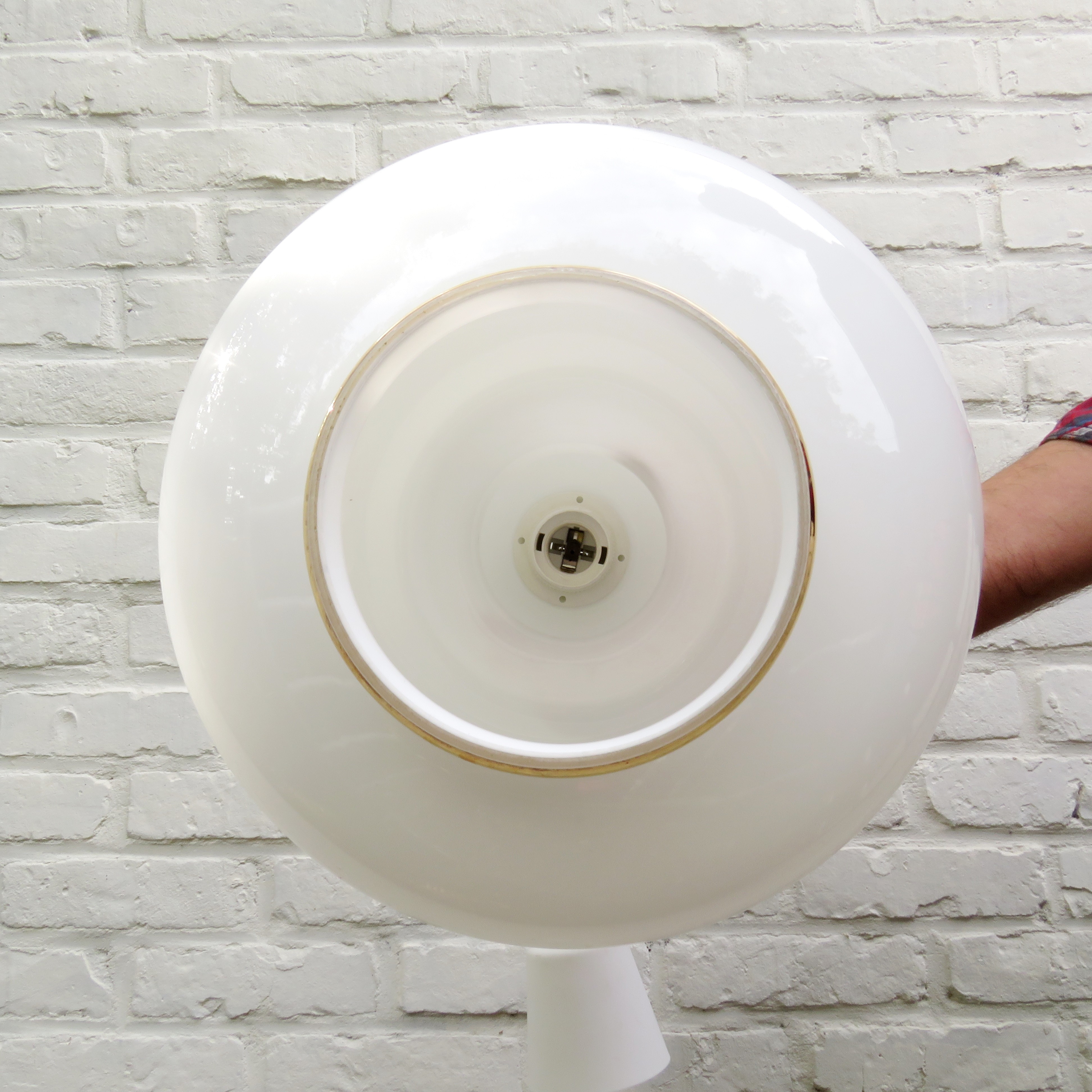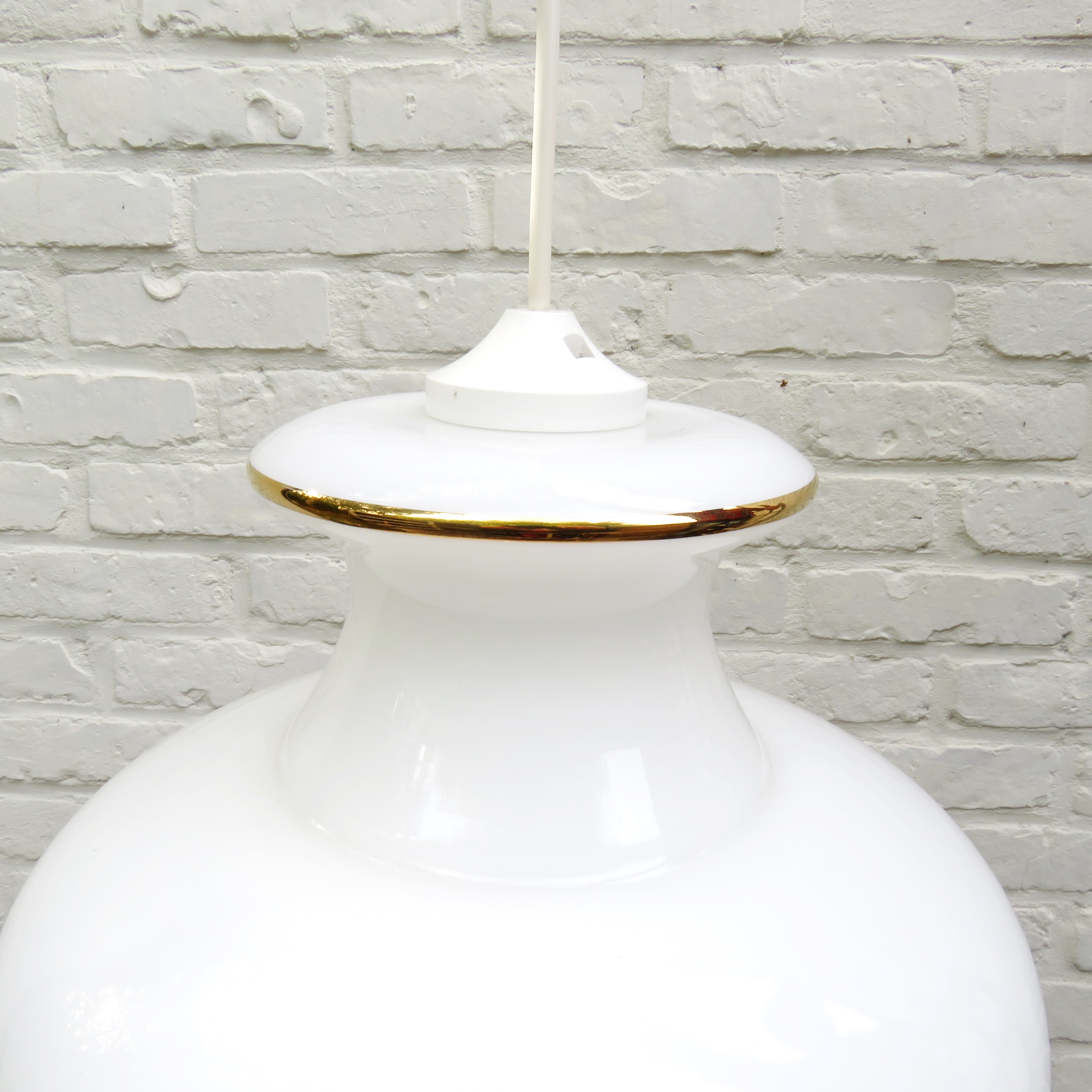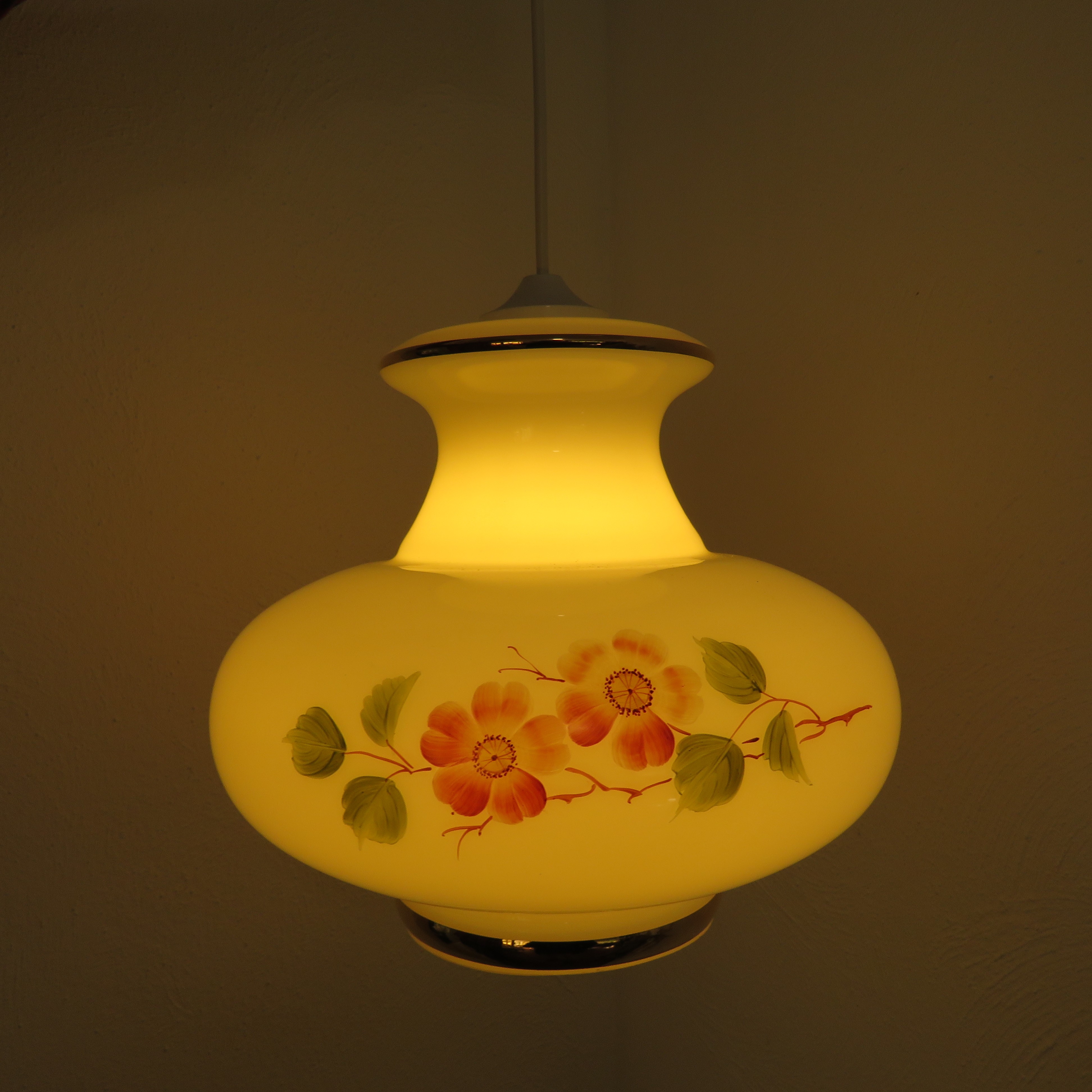 Vintage white opaline glass pendant light with floral decor