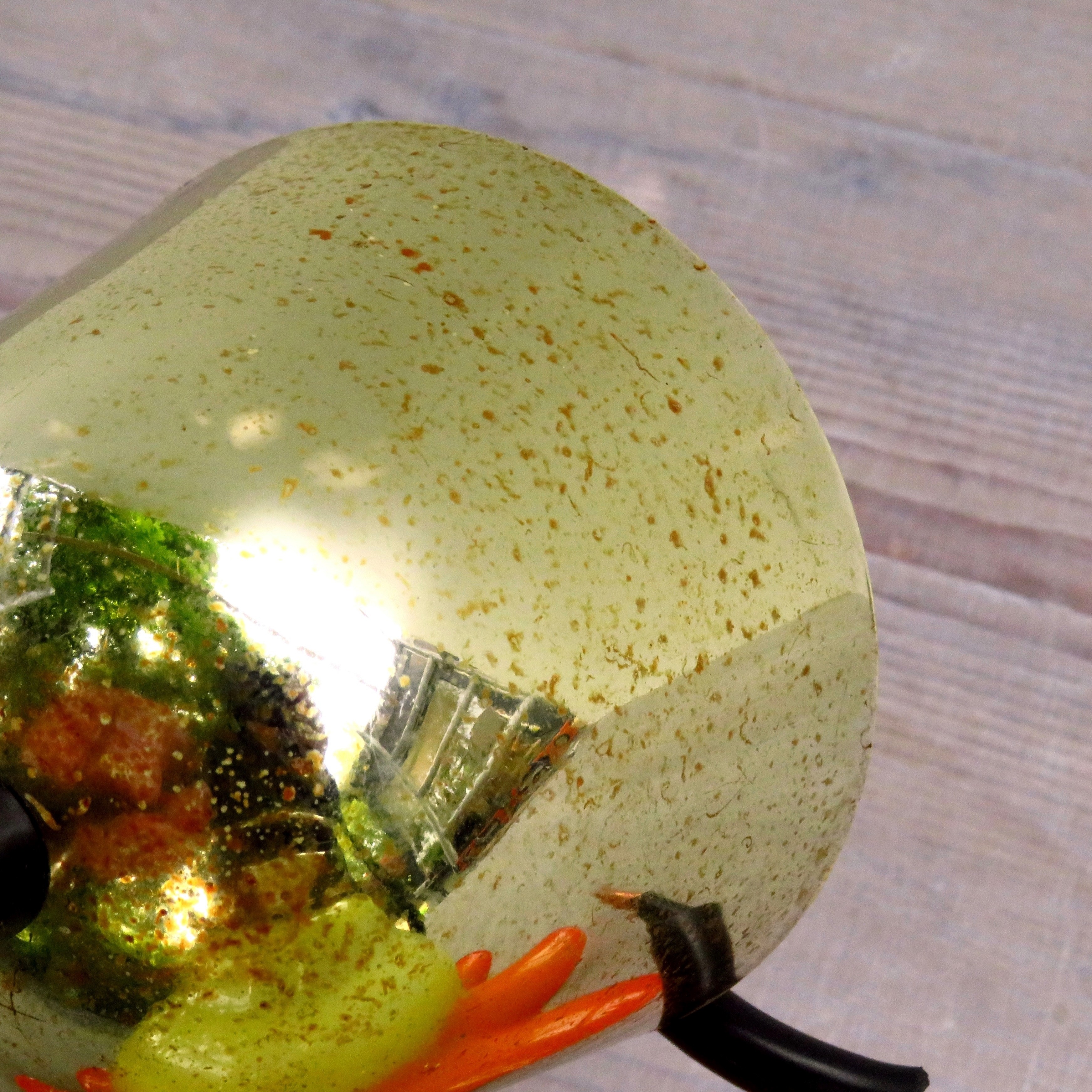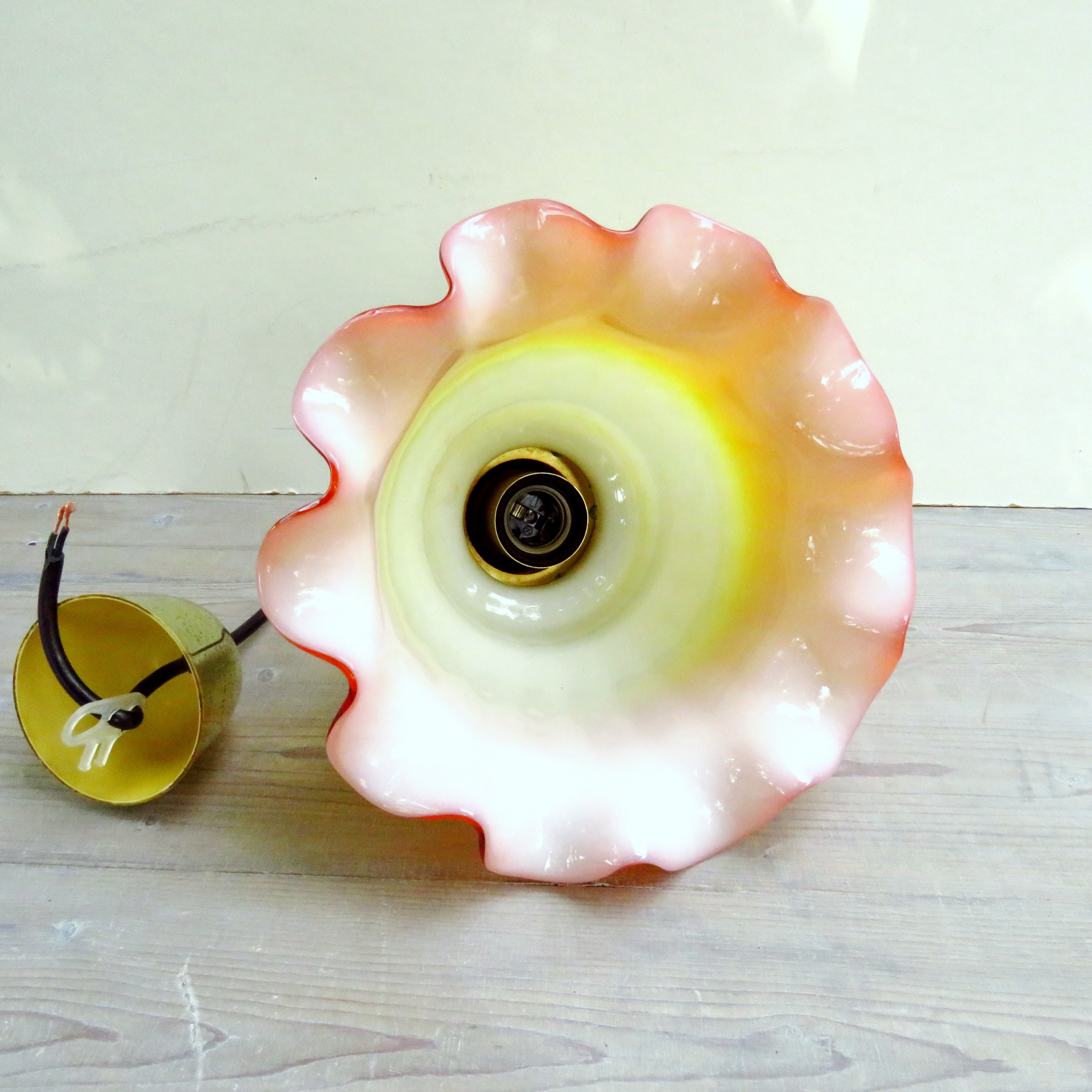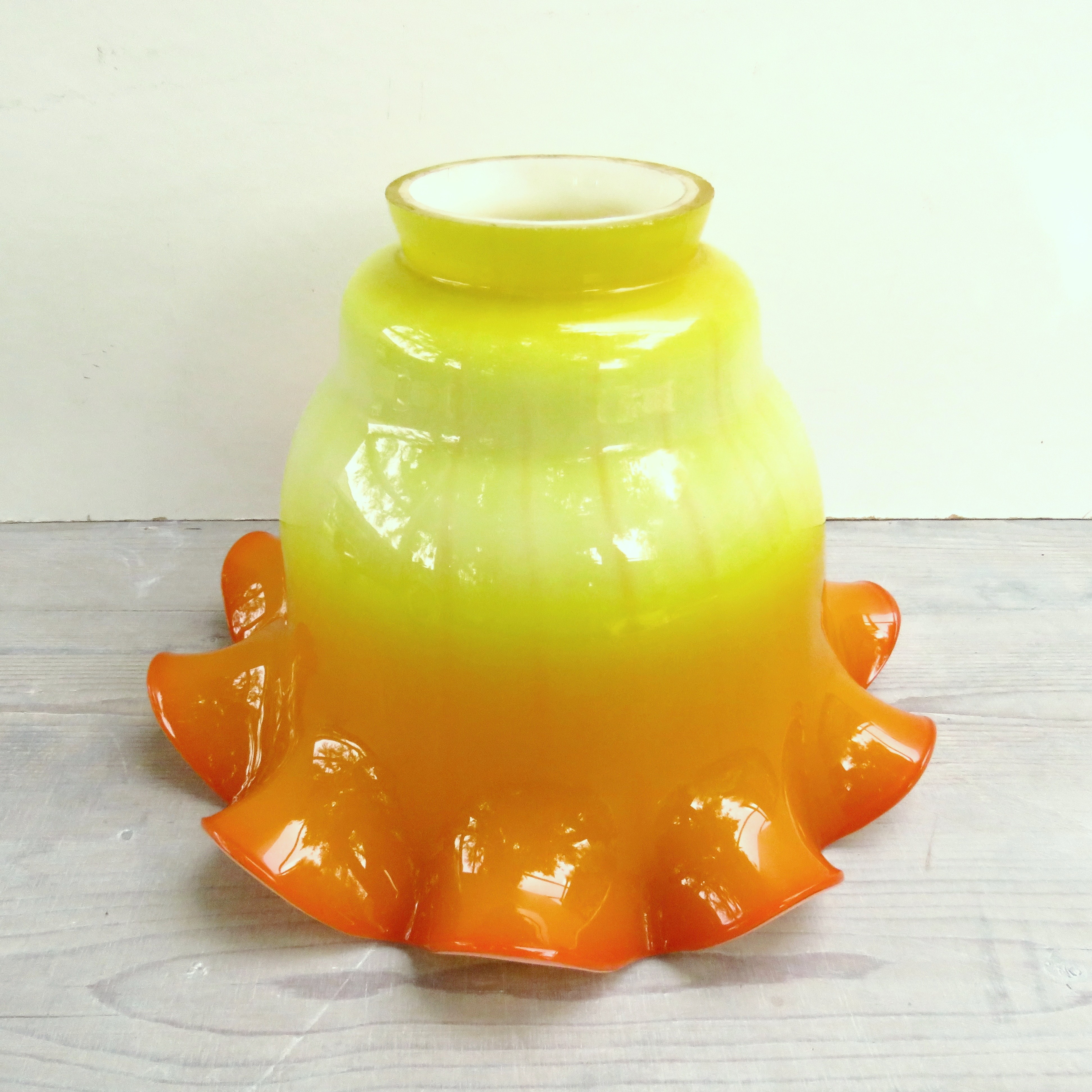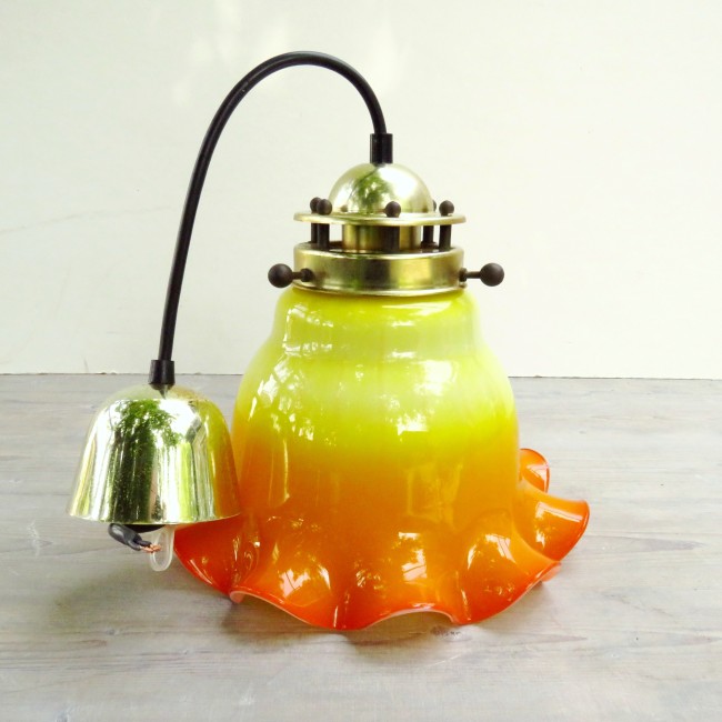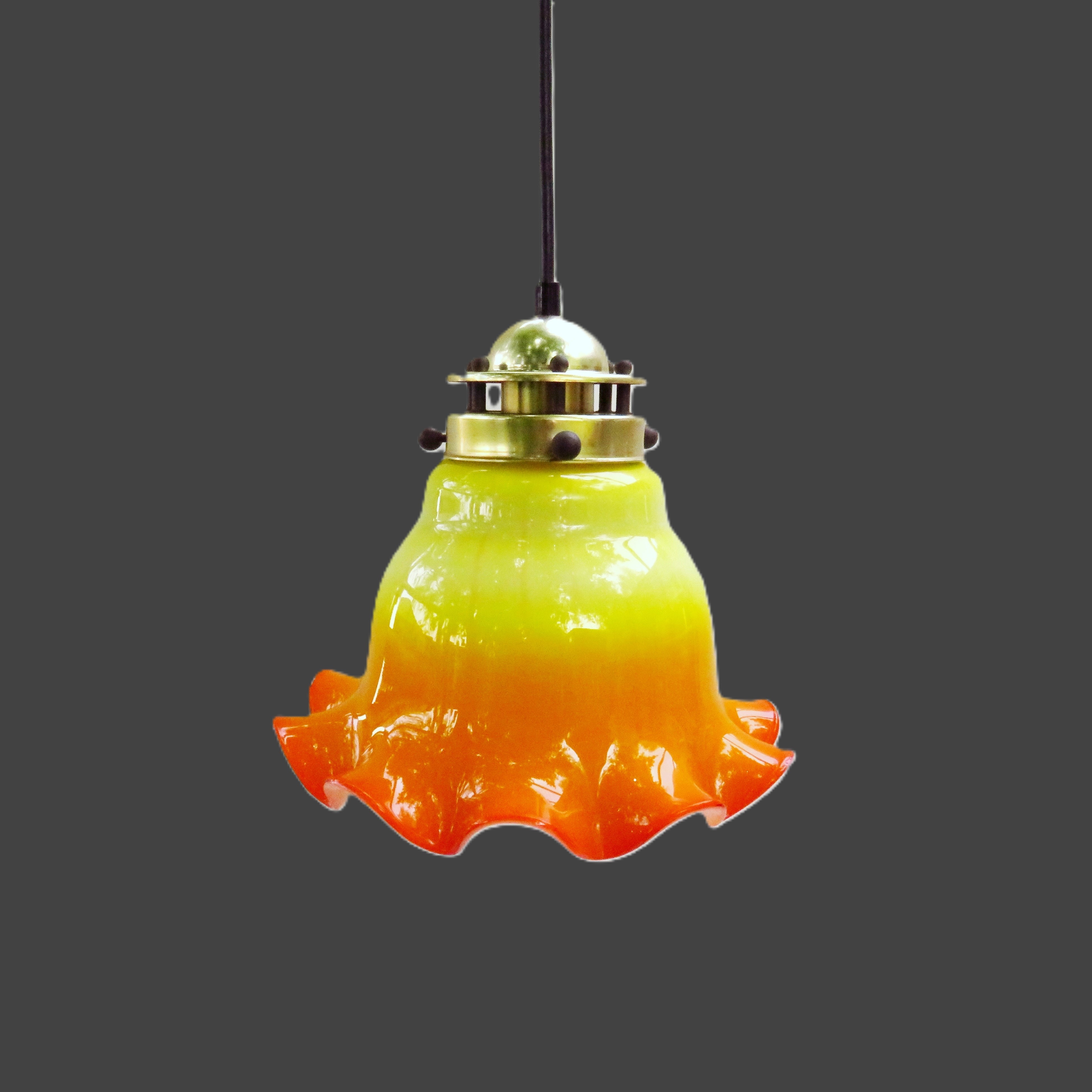 Vintage set of 3 pendant lights with yellow and orange glass lampshade.