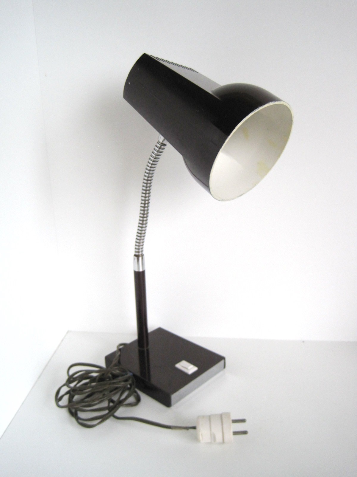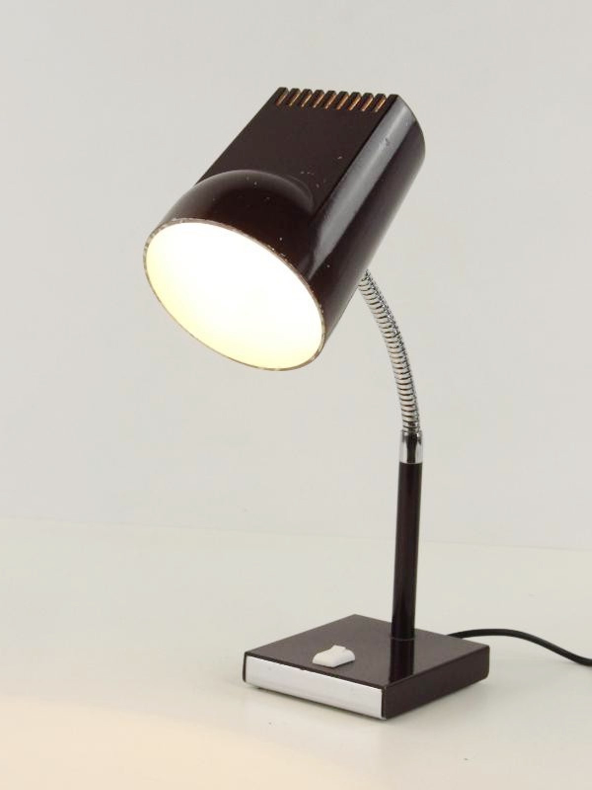 Lampe de bureau vintage à filament flexible en métal brun, modèle fin des années 1960.