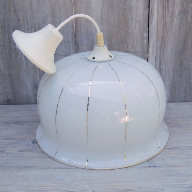 Vintage Suspension en verre blanche et décoration dorée / Vintage white glass pendant light with gold decor