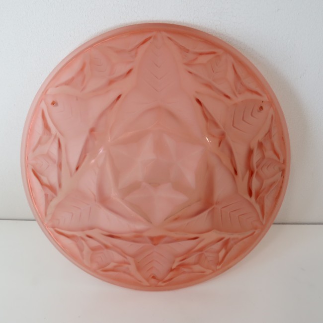 Vintage plafonnier Art Déco en verre rose pêche / Vintage Art Deco peach pink glass ceiling light - MEISSEN Germany
