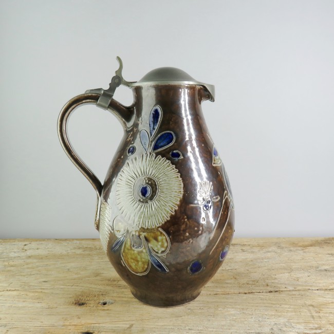 Vintage pichet en gres allemagne / Vintage german stoneware pitcher with floral decor - Elfried Balzar Kopp - BAKO Germany