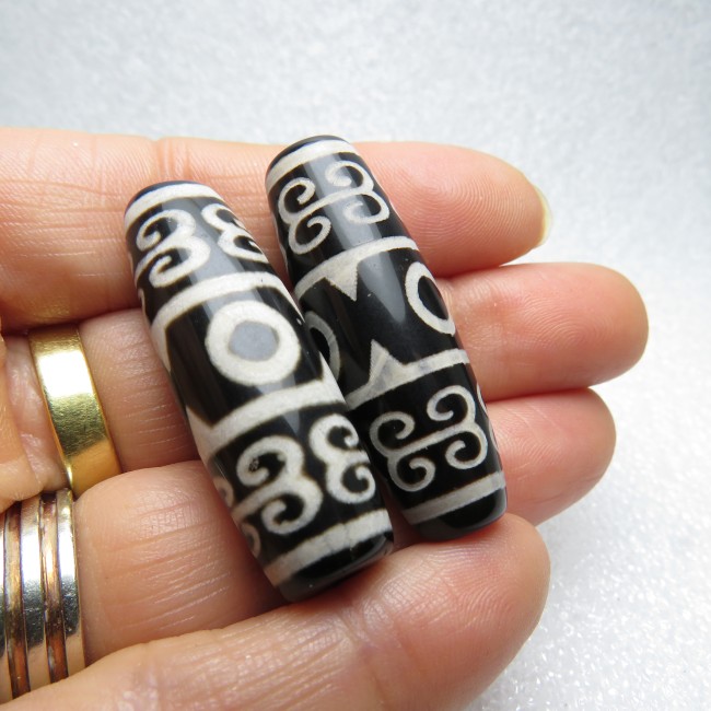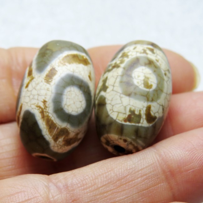 Perle Dzi à 3 Yeux en agate / Agate 3 eyes DZI bead - Paire 40 mm