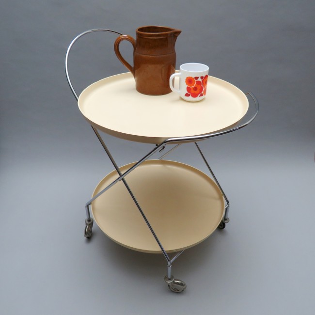 Vintage desserte servante chromé avec plateaux en plastique / Vintage chrome trolley with plastic trays - Made in France