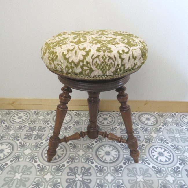 Ancien Tabouret de piano en bois avec assise en tissu / Antique wooden tripod piano stool with fabric seat - UNIQUE !