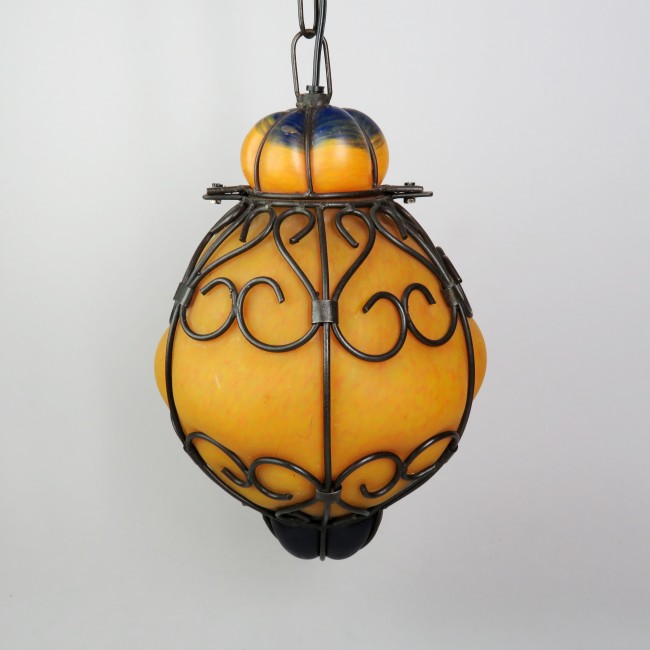 Vintage suspension lanterne cage en verre / Vintage Venetian caged glass pendant light