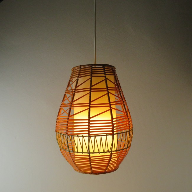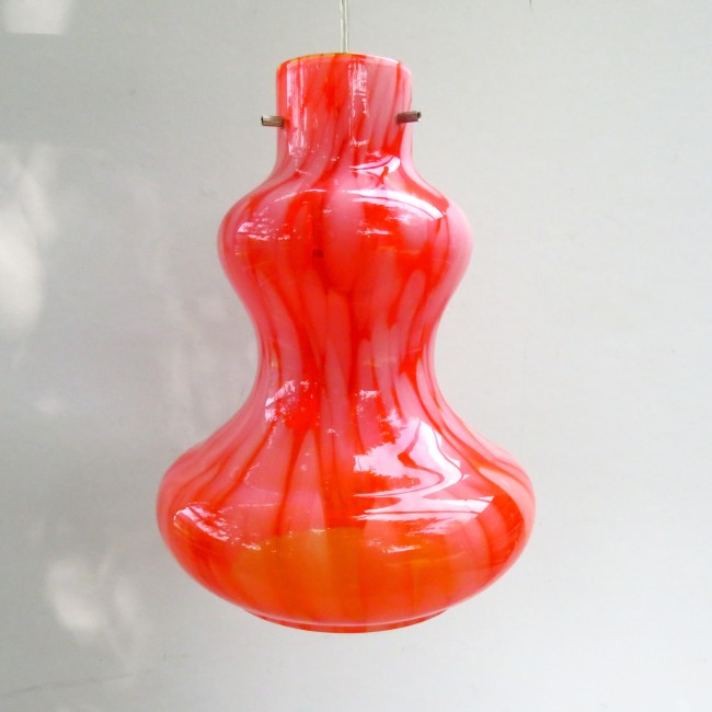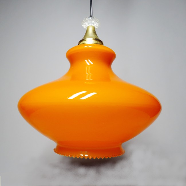 Vintage lampe a suspension en verre orange / Vintage orange glass pendant light